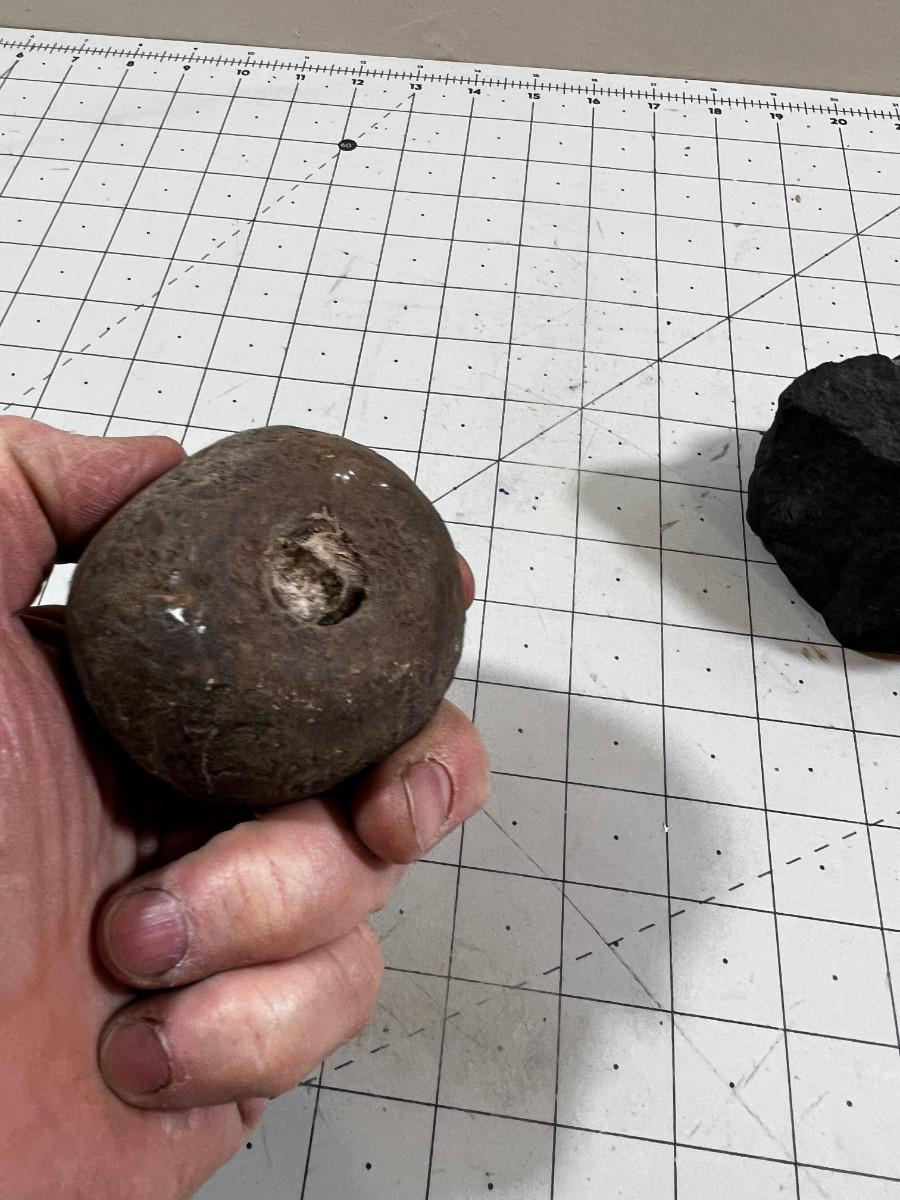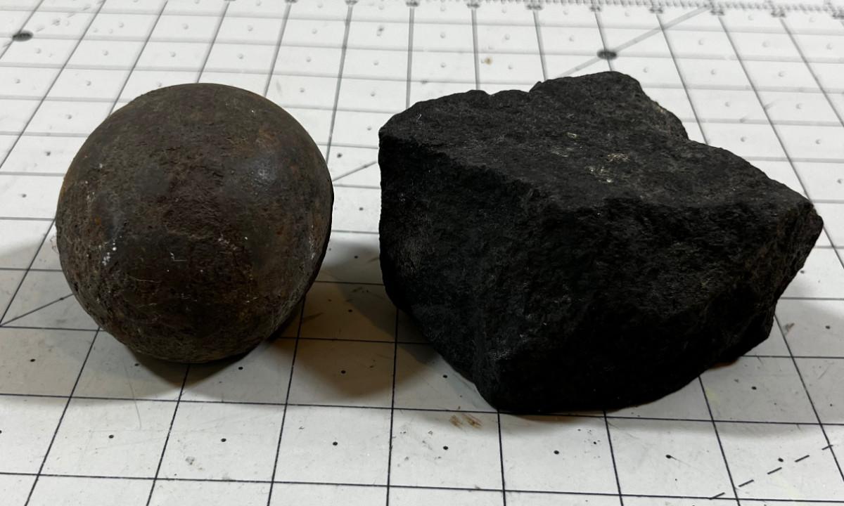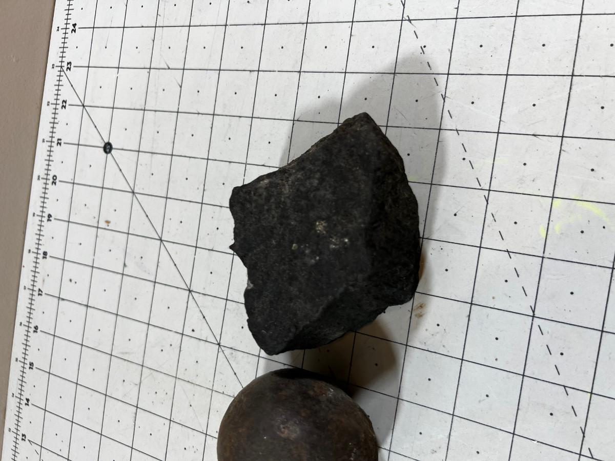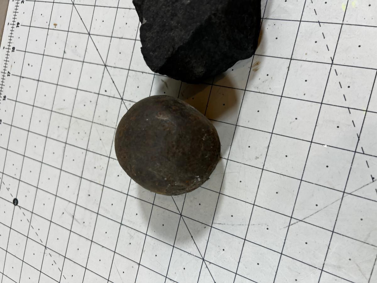 Steel or iron ball, chunk of very dense material possibly a lead ore.