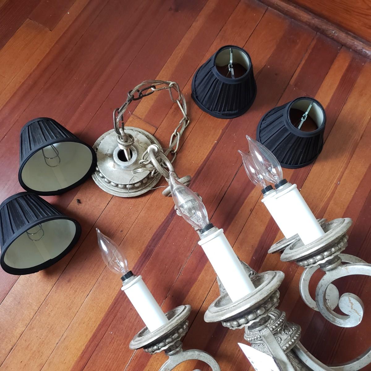 Lot includes a four bulb iron chandelier that measures 17”D x 23”H not including chain. Light was not tested.