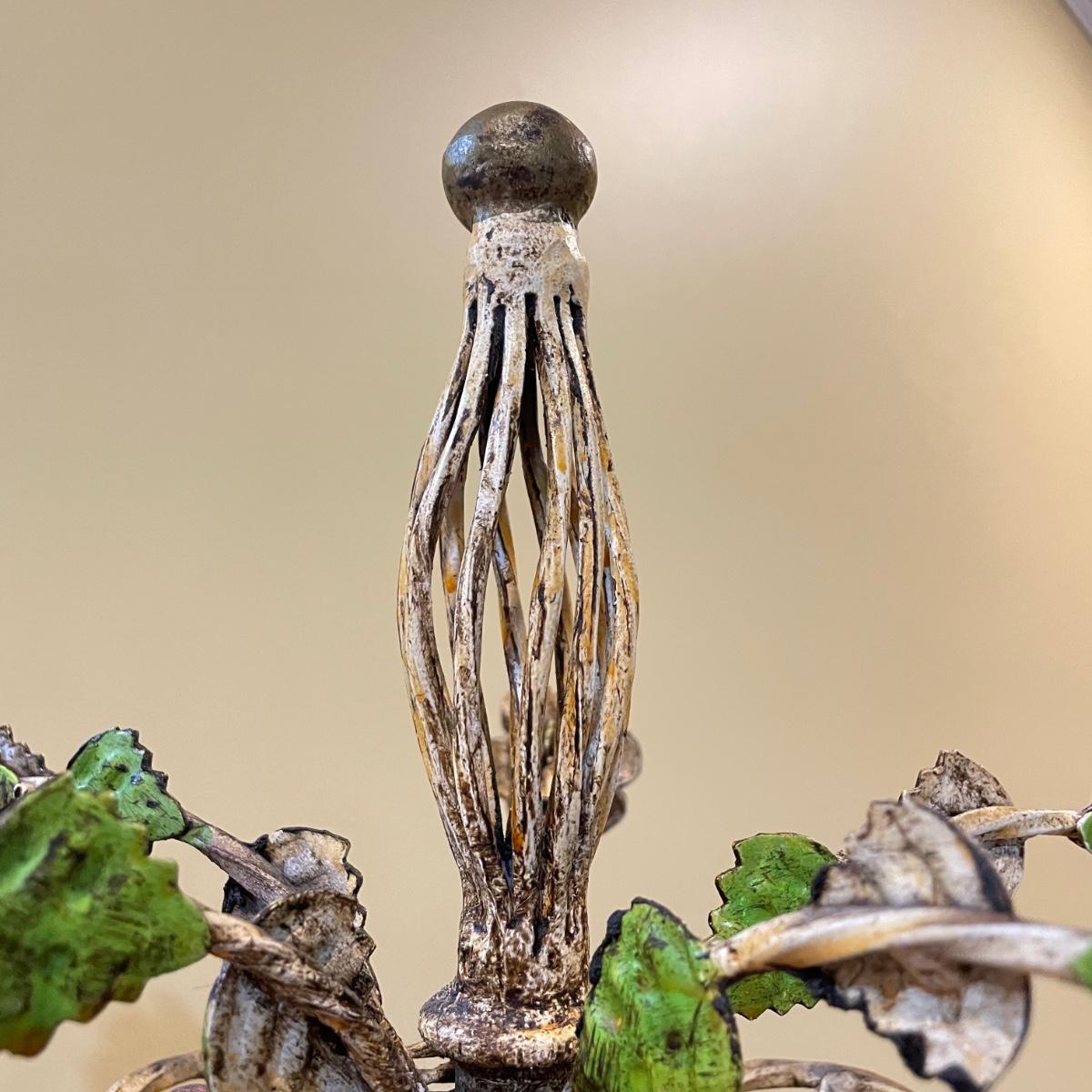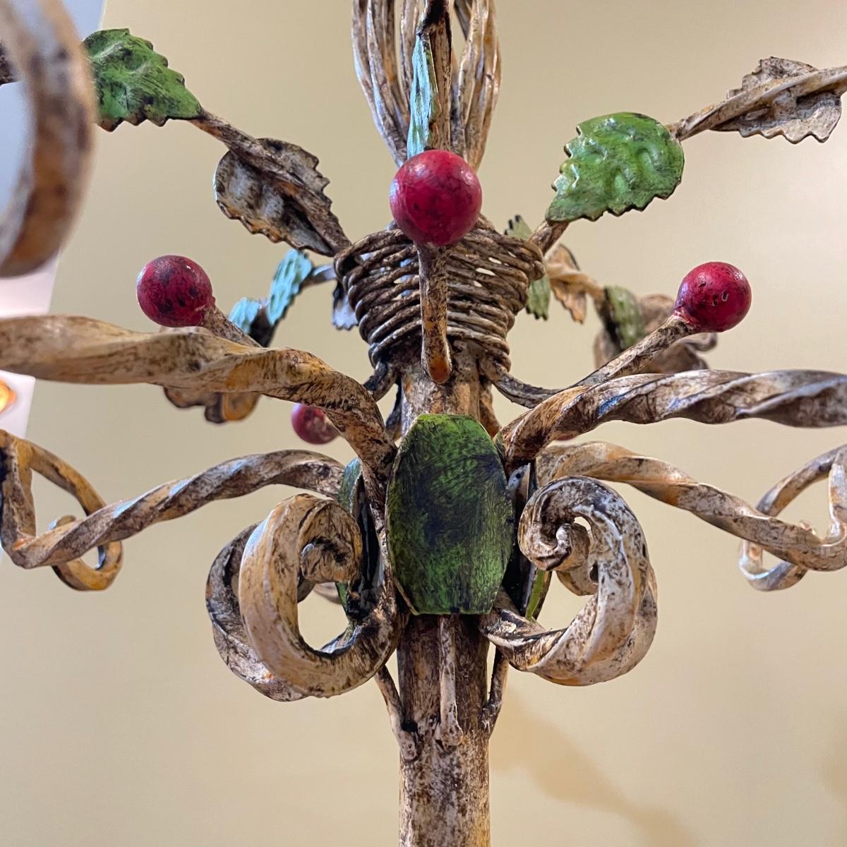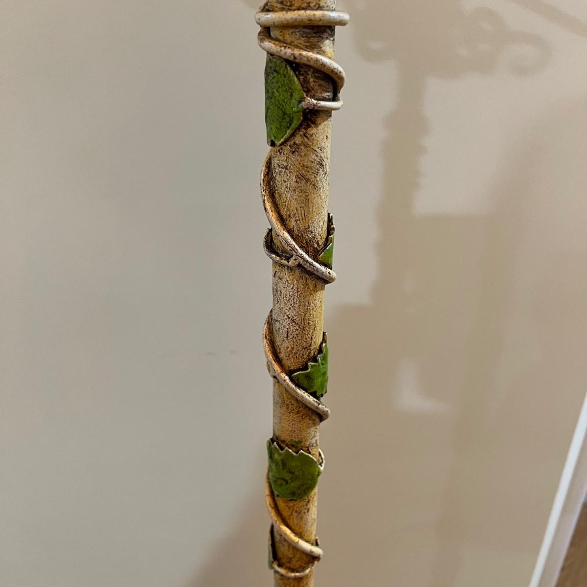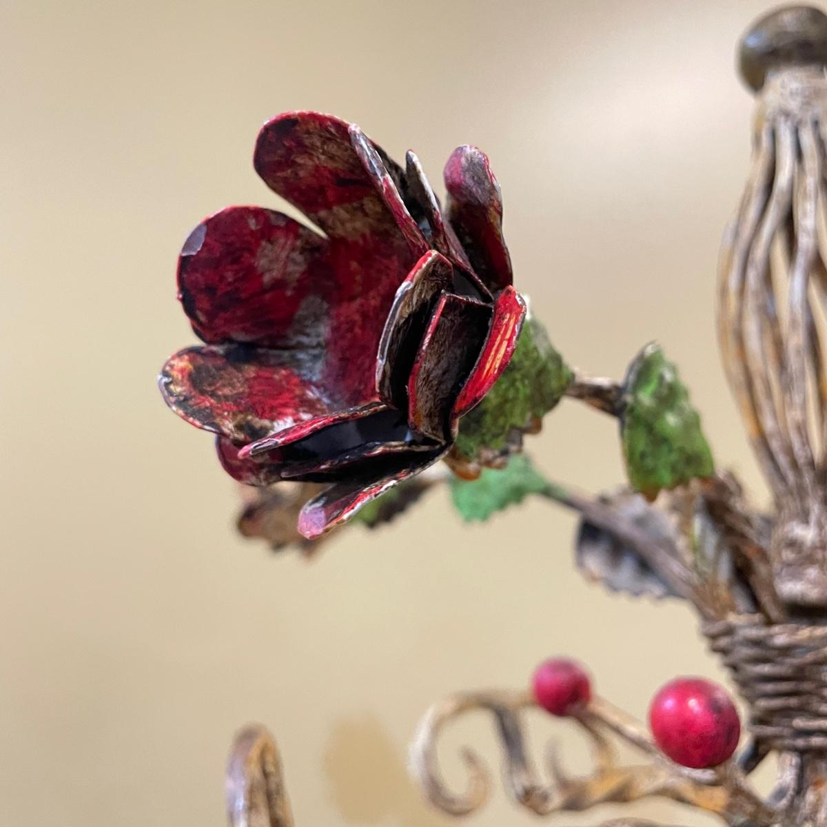 Iron metal coat rack decorated in rose shapes and painted gold. This piece measures 14.5” square x 6’1” H.