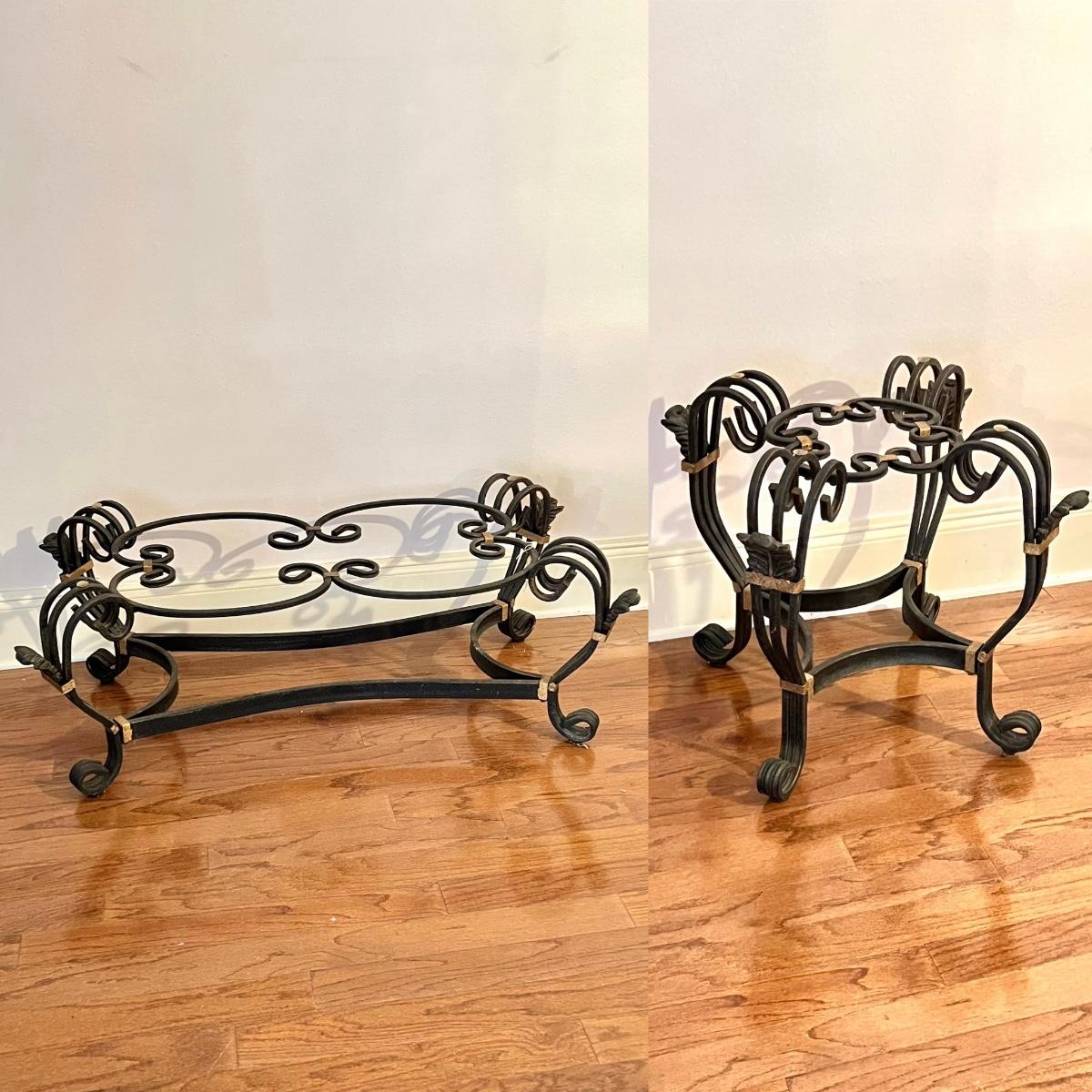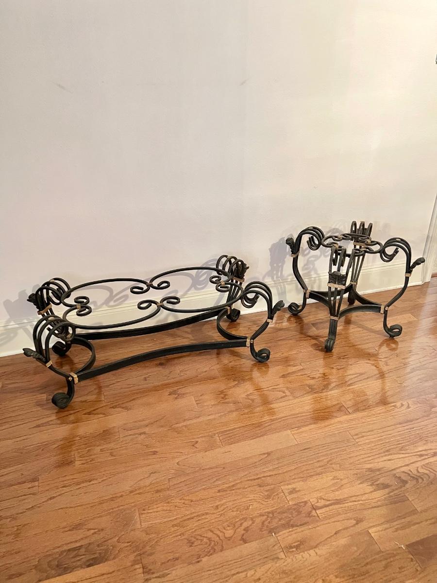 Tables do not have their glasses, new glass tops will have to be made or added. Coffee table is missing 1 suction cup for glass top. Coffee table base = 16” H x 44” W x 22” D ~ end table base = 21” H x 21” Square ~ These are medium weight, not super heavy.