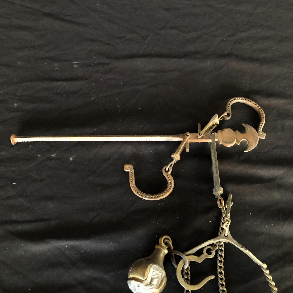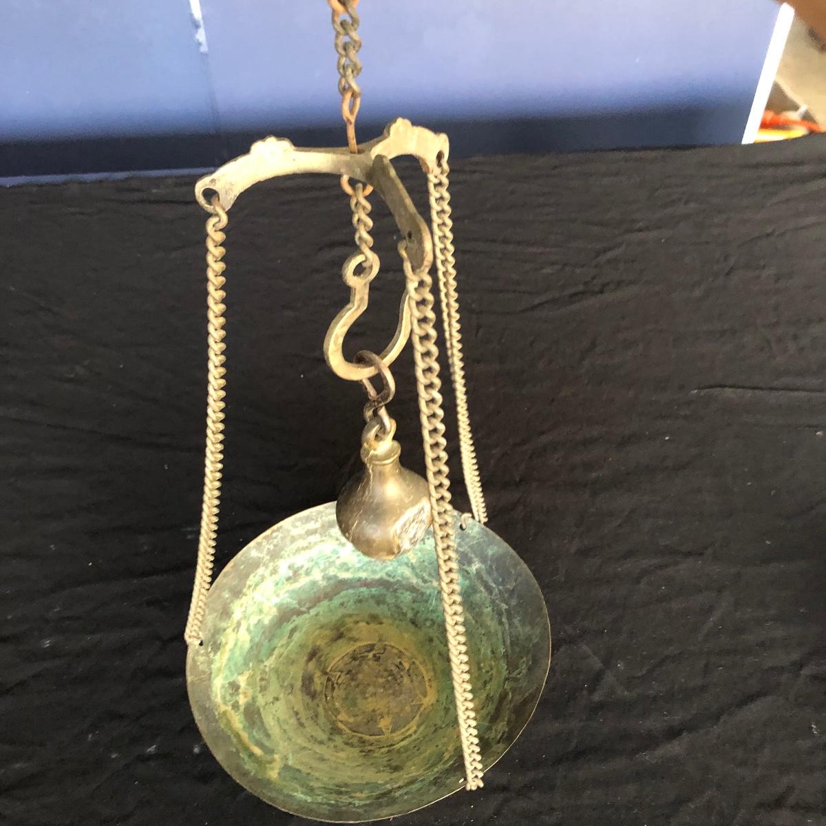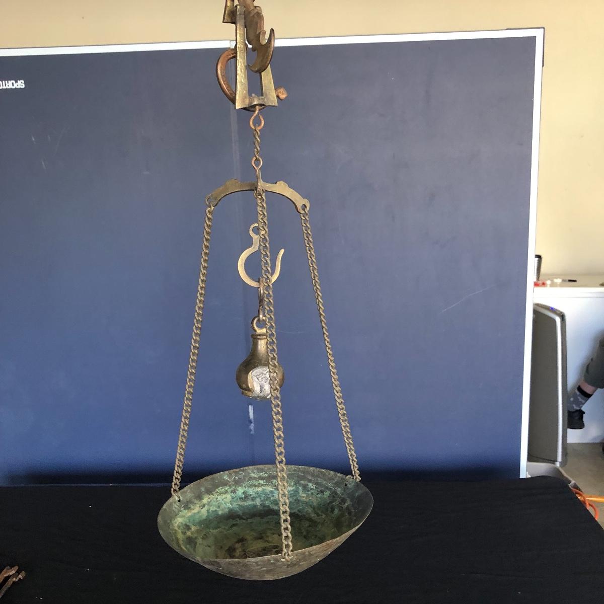 This scale has a heavy iron weight and what appears to be a copper dish (8.5” in diameter). Shipping Available.