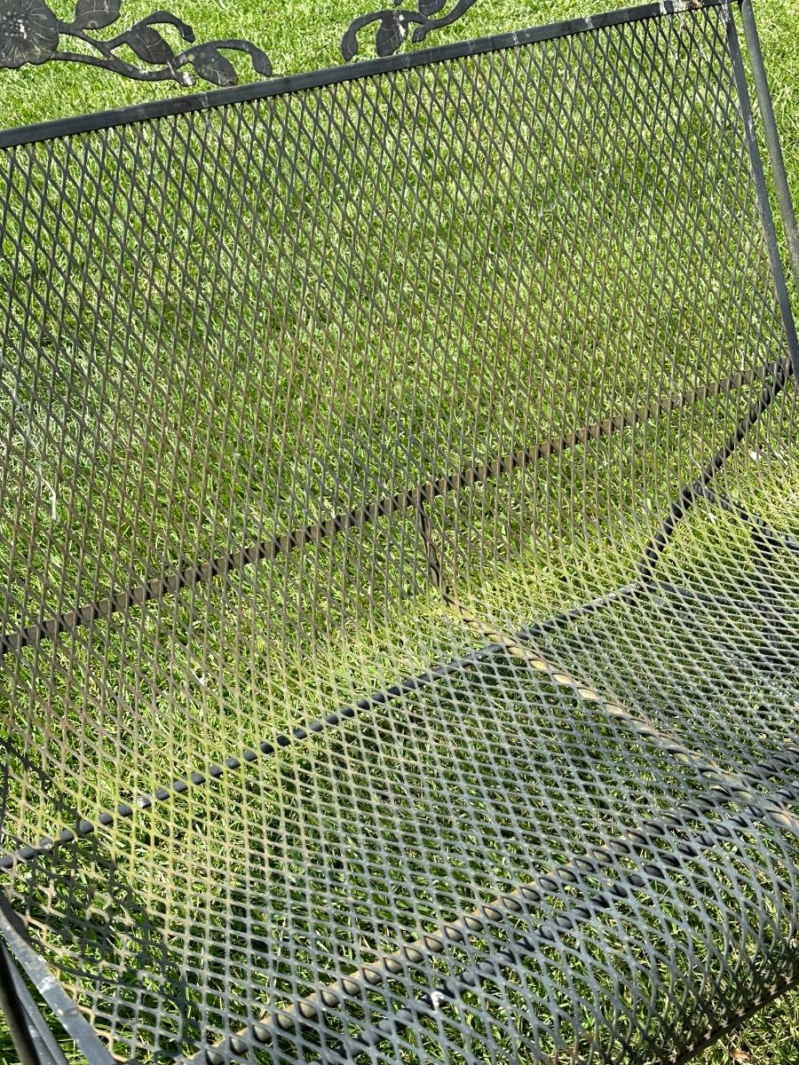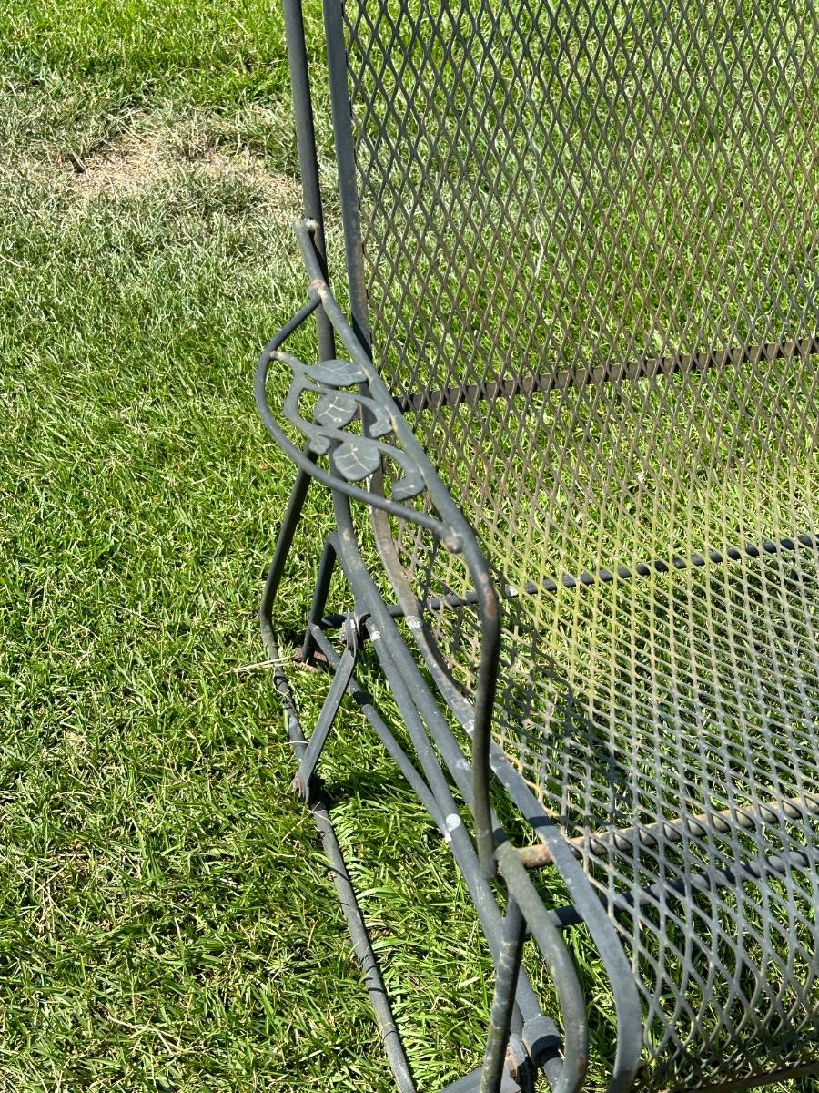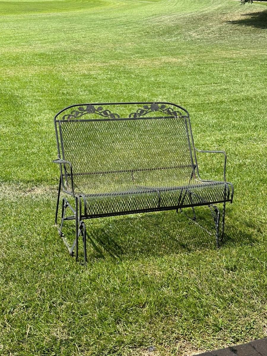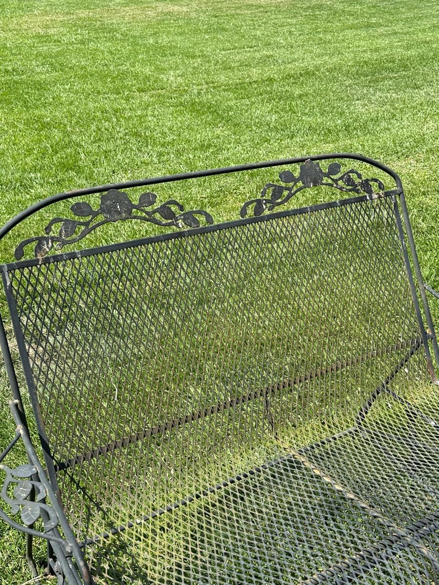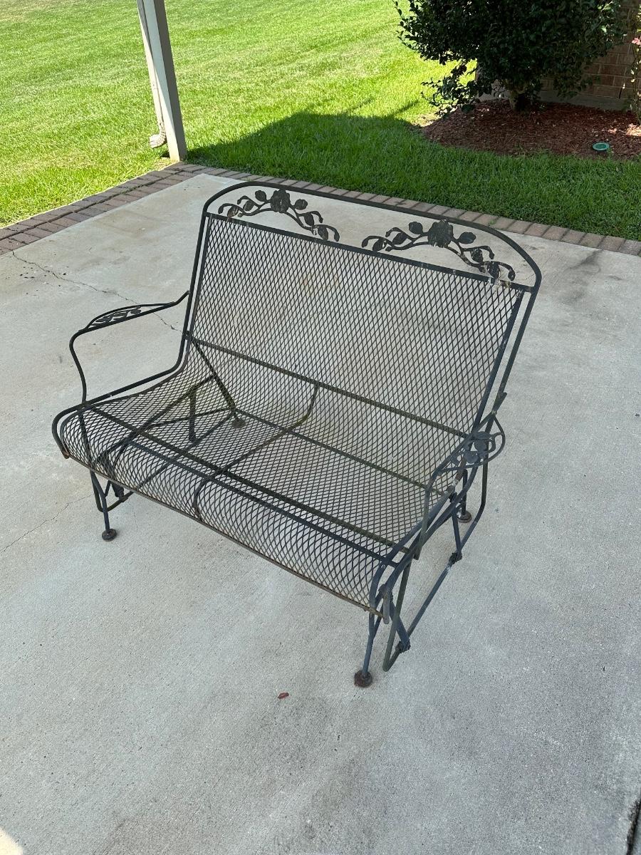Needs cleaning ~ Minor surface rust (see photo) ~ glides easily ~ 35” H x 46” W x 27” D ~ Porch kept
