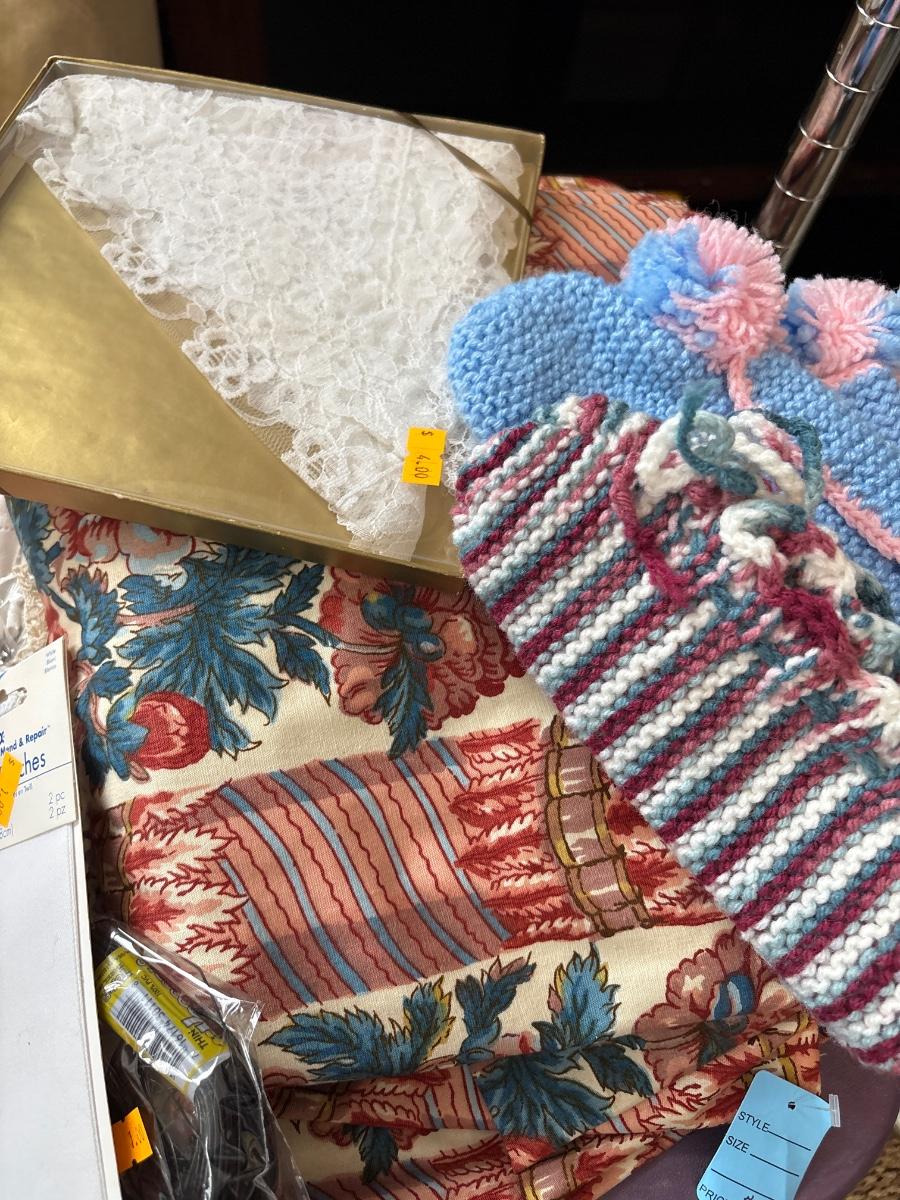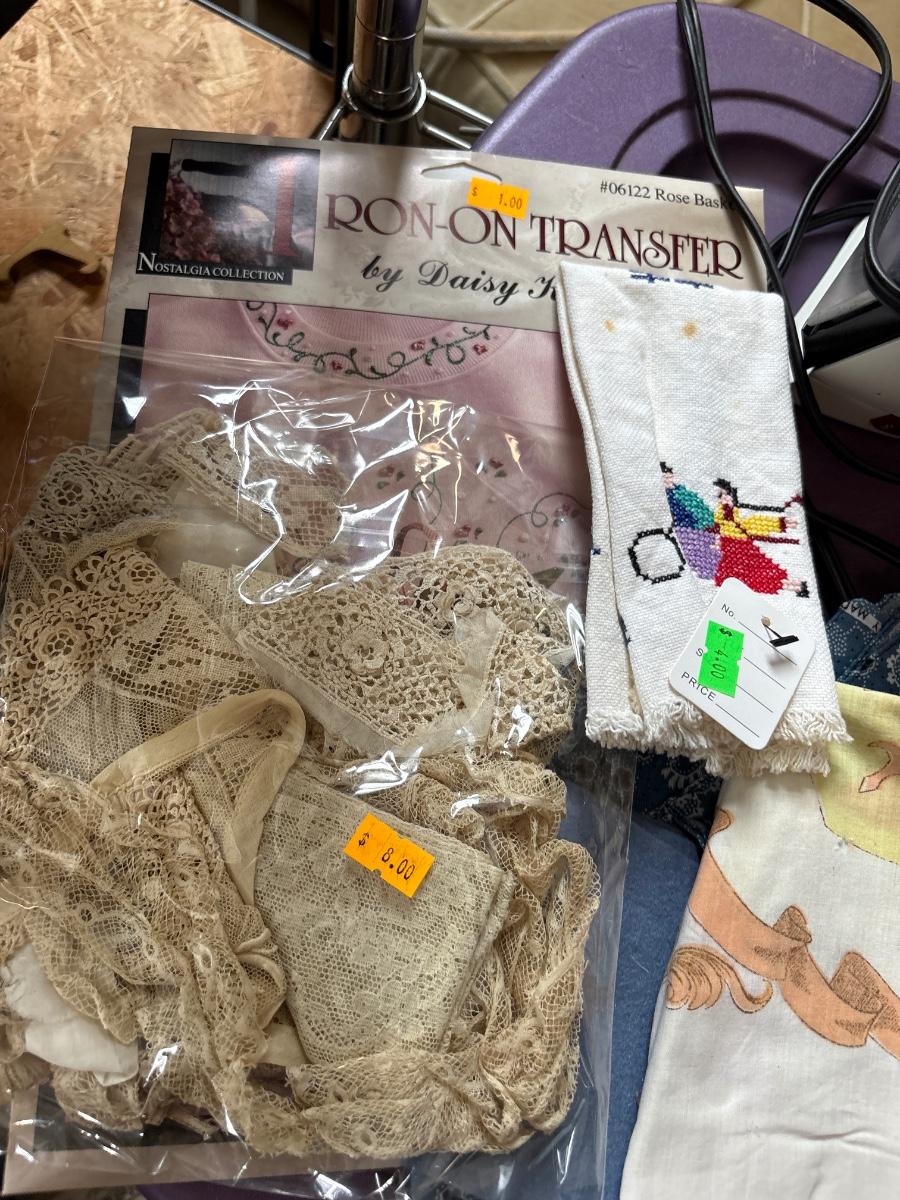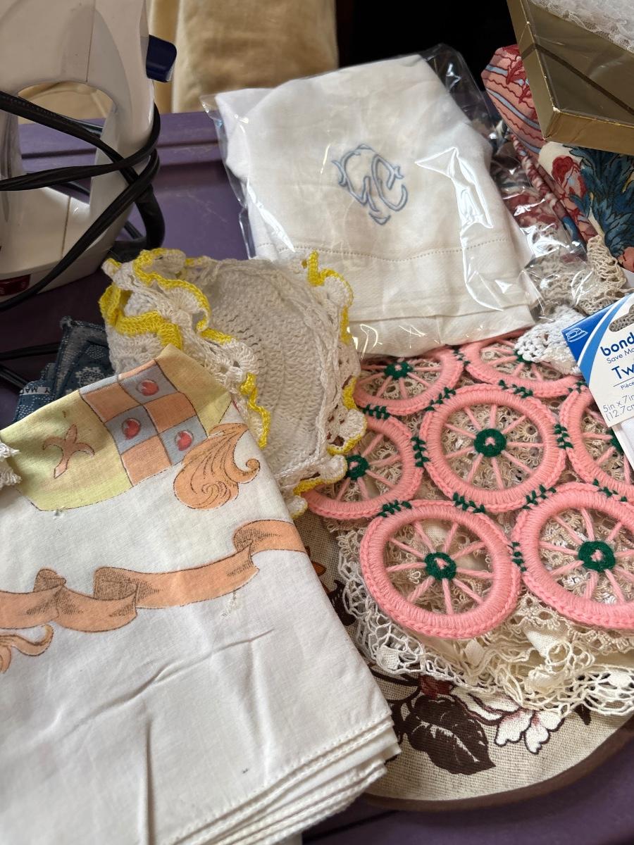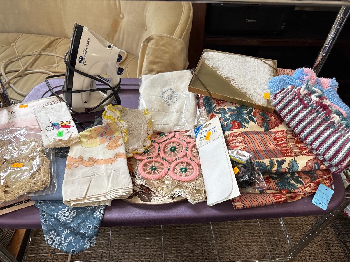 Iron, fabric, doilies, more