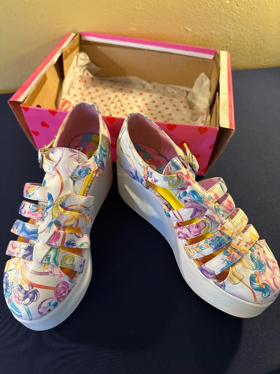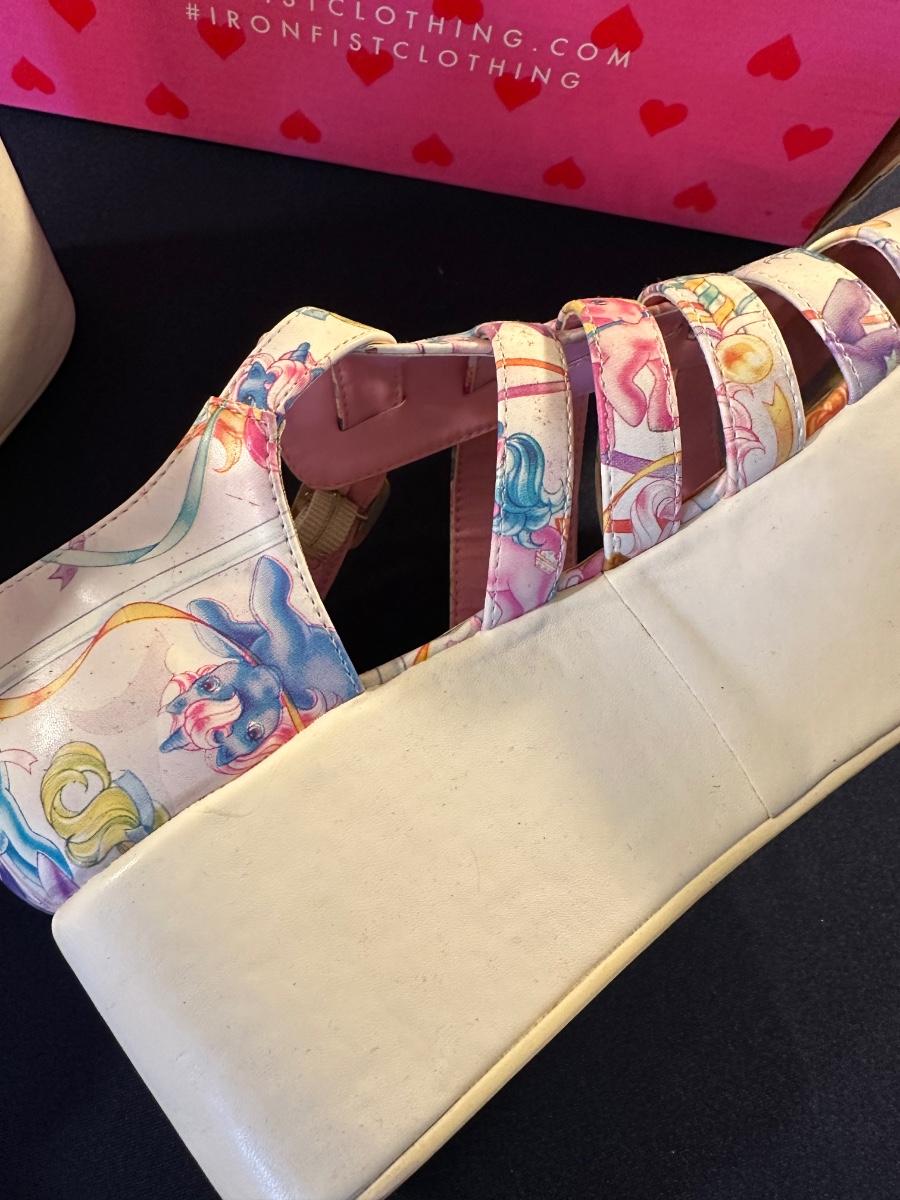 IRON FIST MERRY GO ROUND MY LITTLE PONY WEDGE SHOES SIZE 8 GENTLY USED