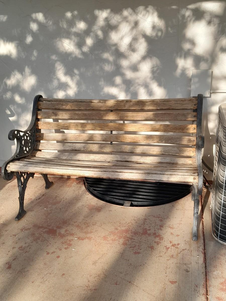 Iron framed wooden seat park / yard bench. 30" x 50" x 24"