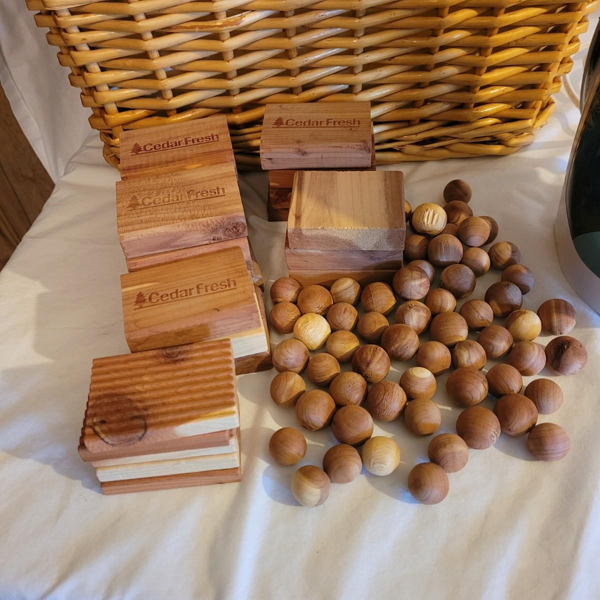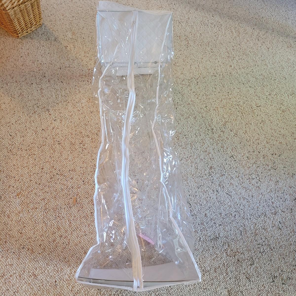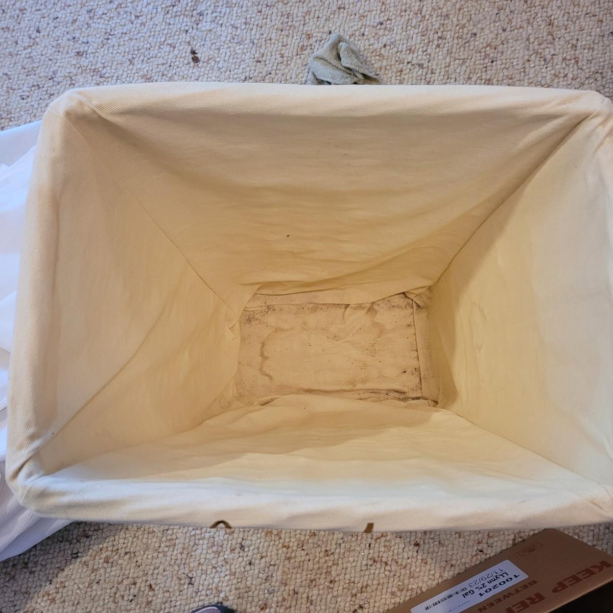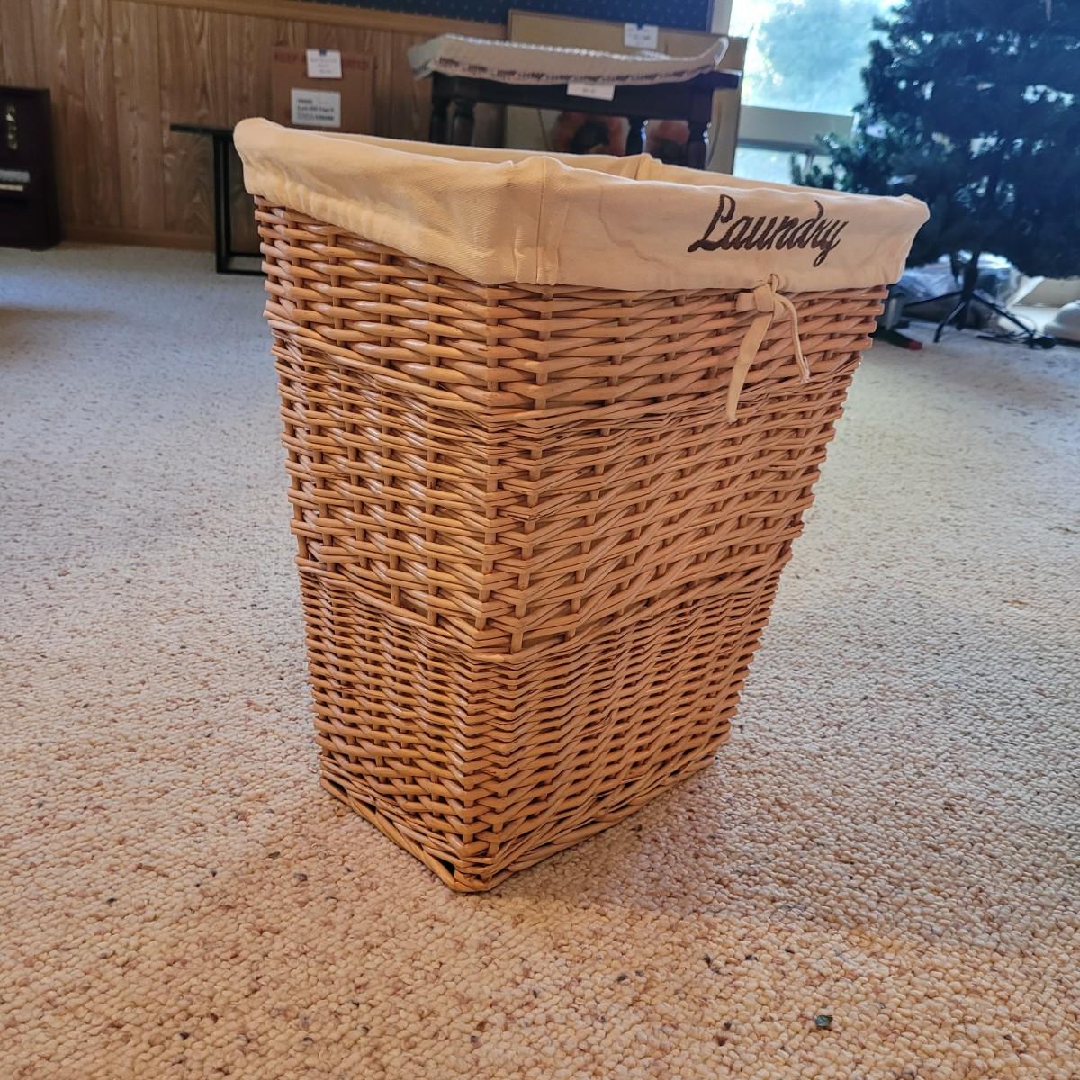 This lot contains an iron and an assortment of laundry and garment storage items, including cedar blocks and balls, a hamper, eight garment bags, a hanging garment container and metal garment storage accessories. Hamper measures approximately 16” x 12” x 21”H. Iron powered on when plugged in. Local pick up only.