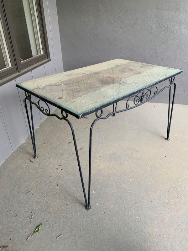Iron Glass Top Table & 2 Matching Iron Chairs