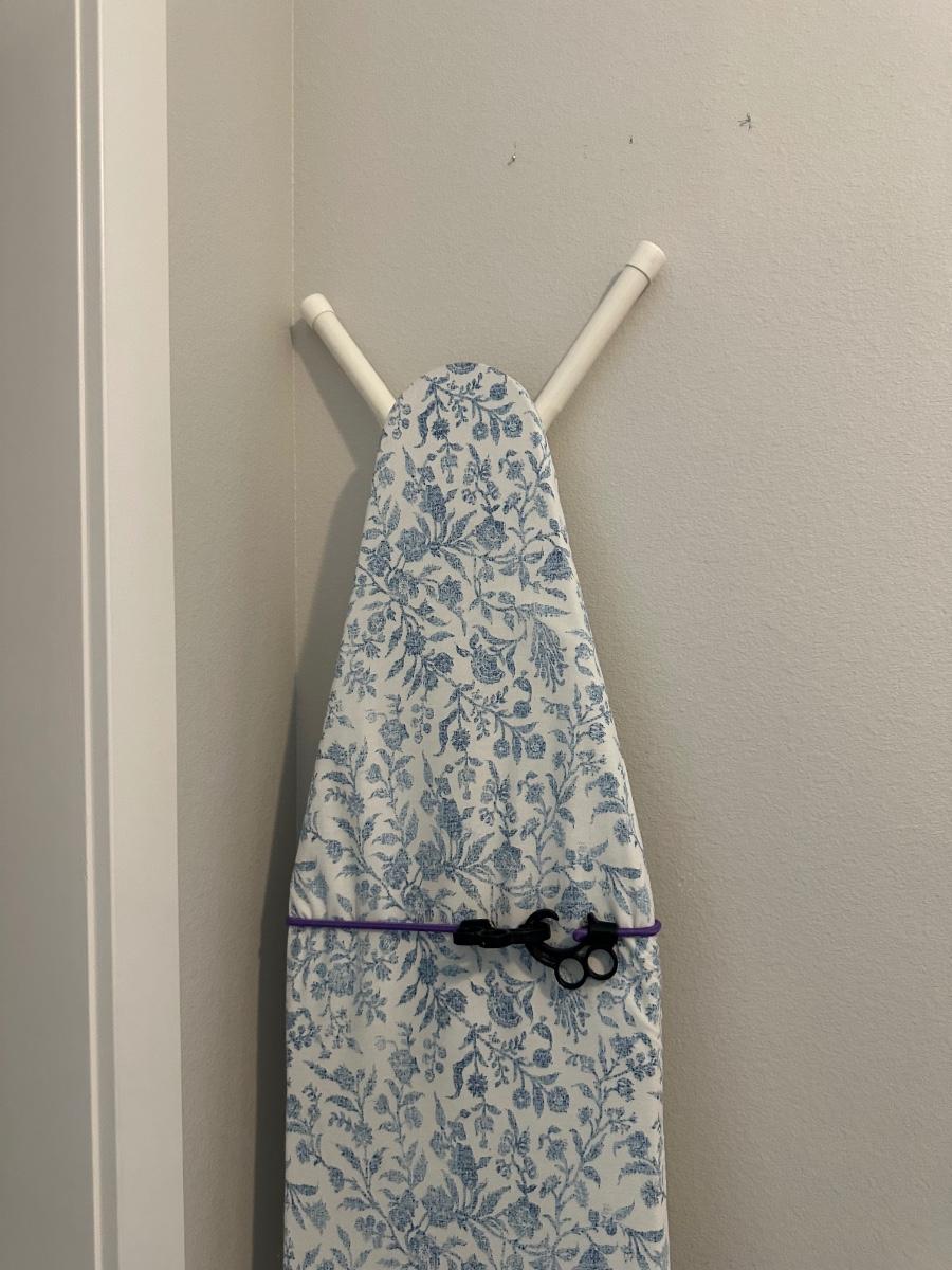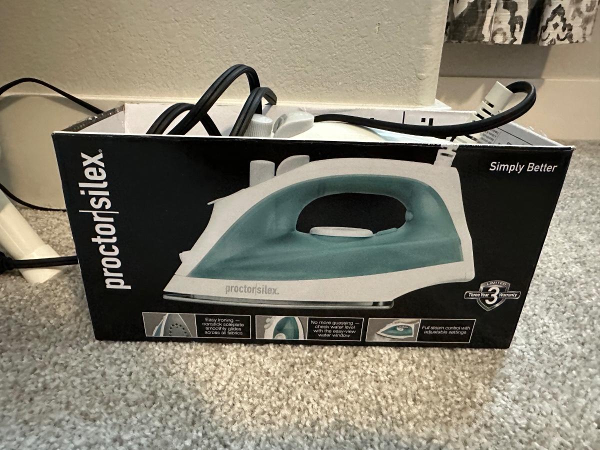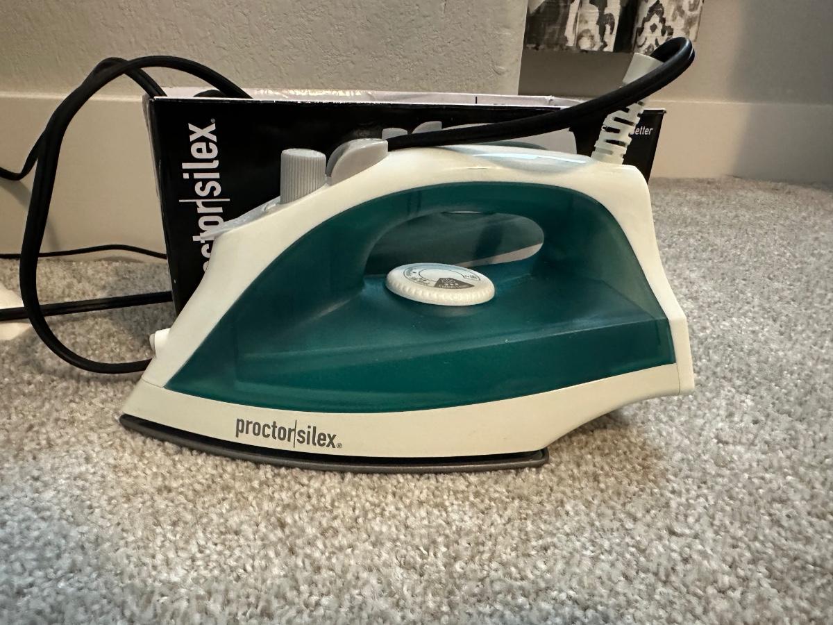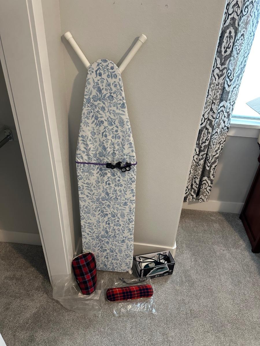 IRON, IRONING BOARD WITH PRESSING SLEEVES