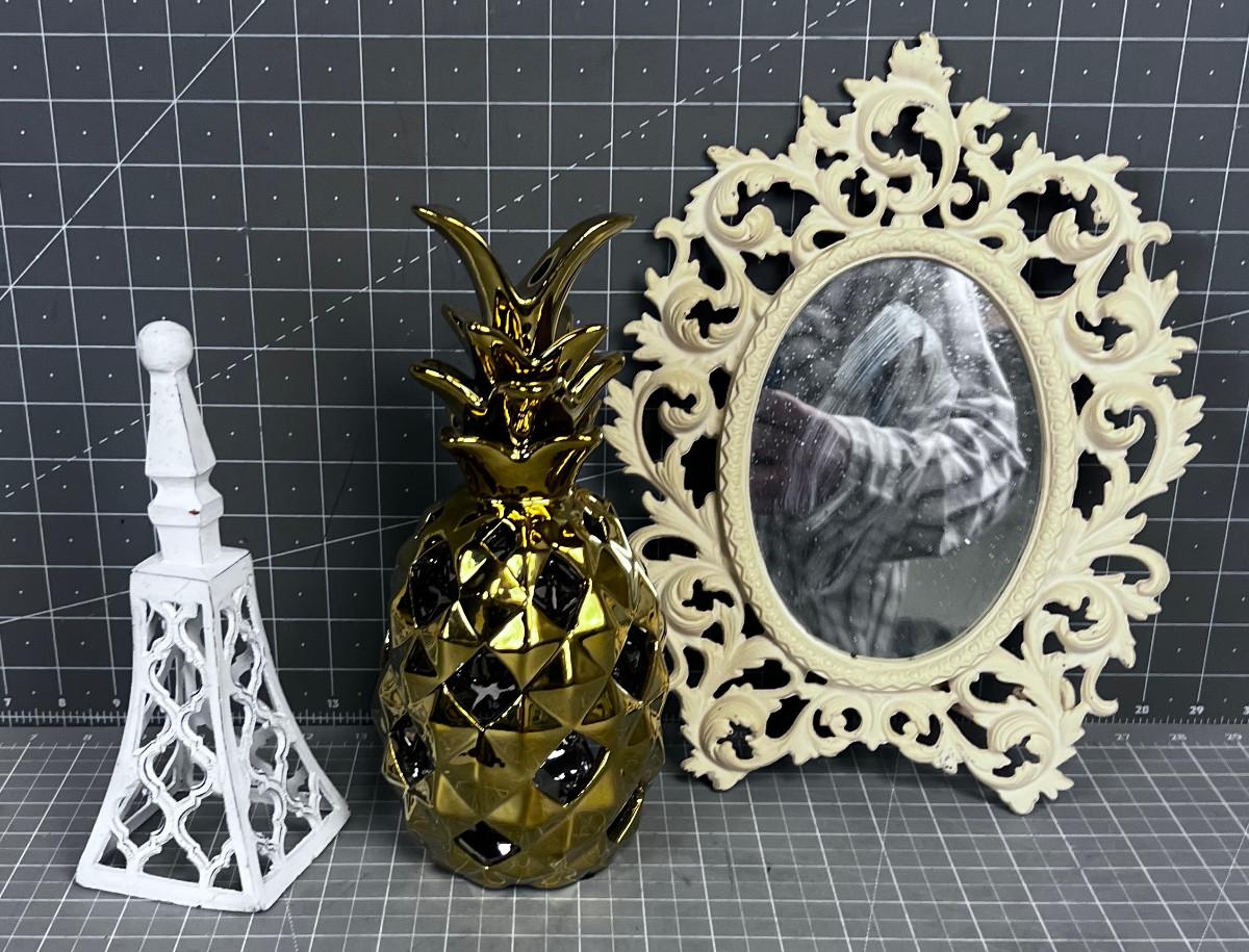 Iron Mirror, Ceramic Pineapple Votive etc.