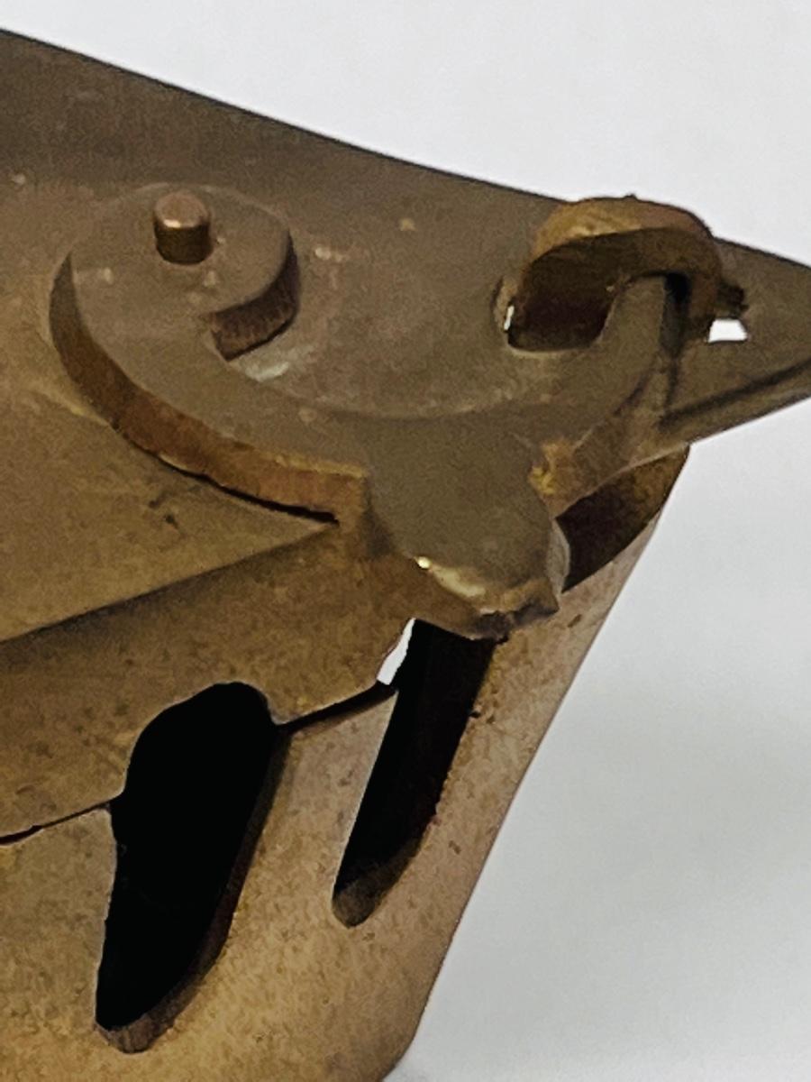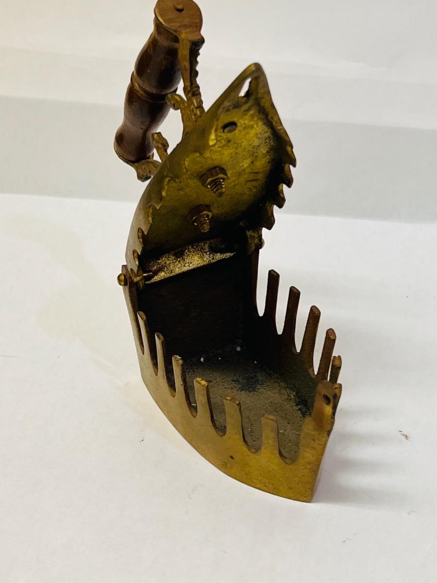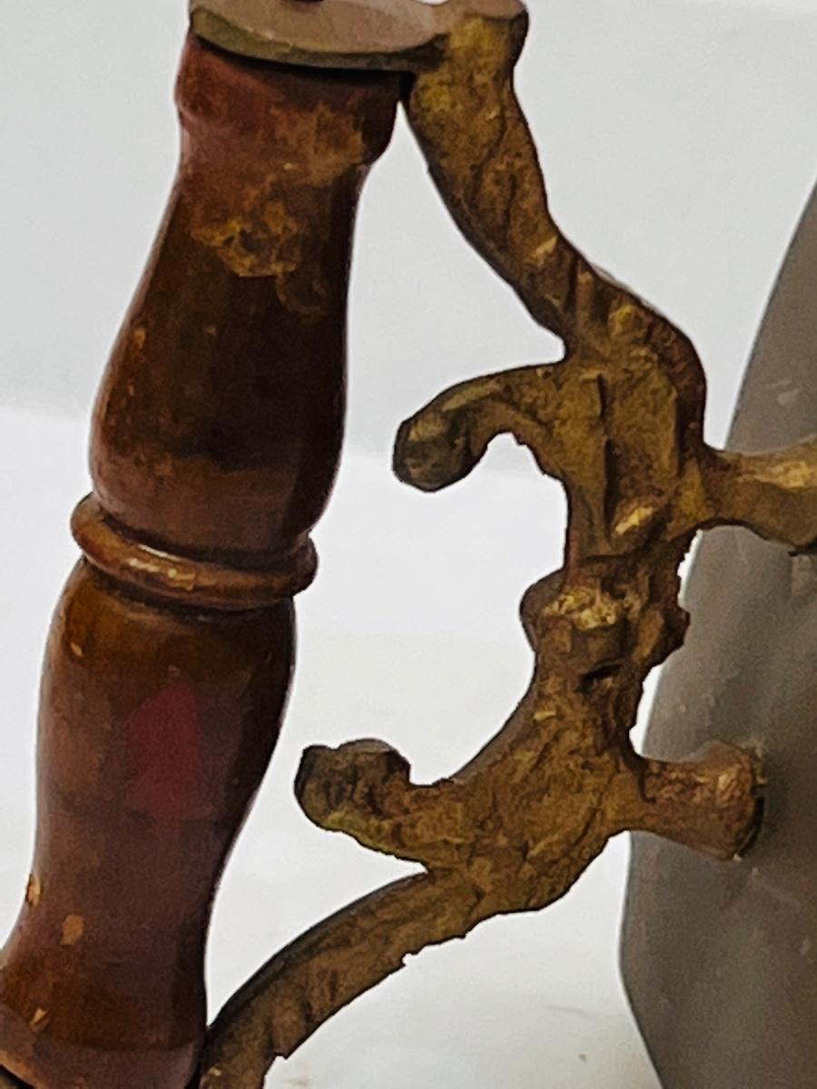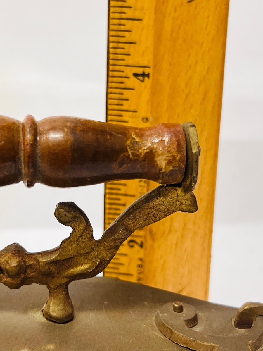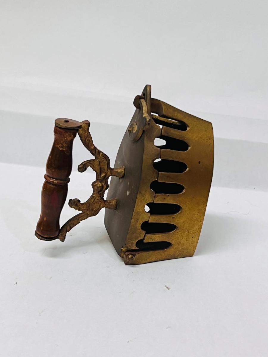 Vintage Brass Charcoal Burning Iron with Wood Handle