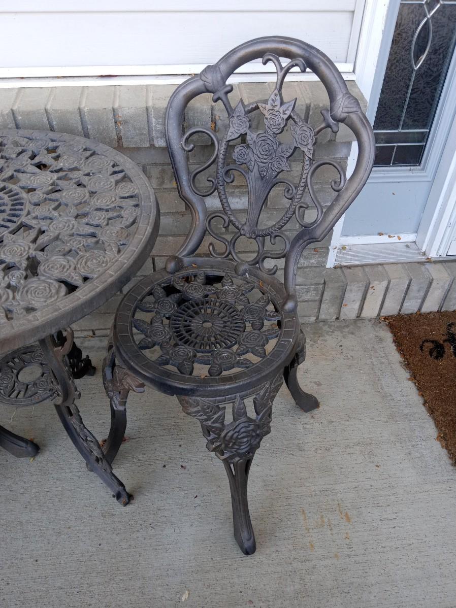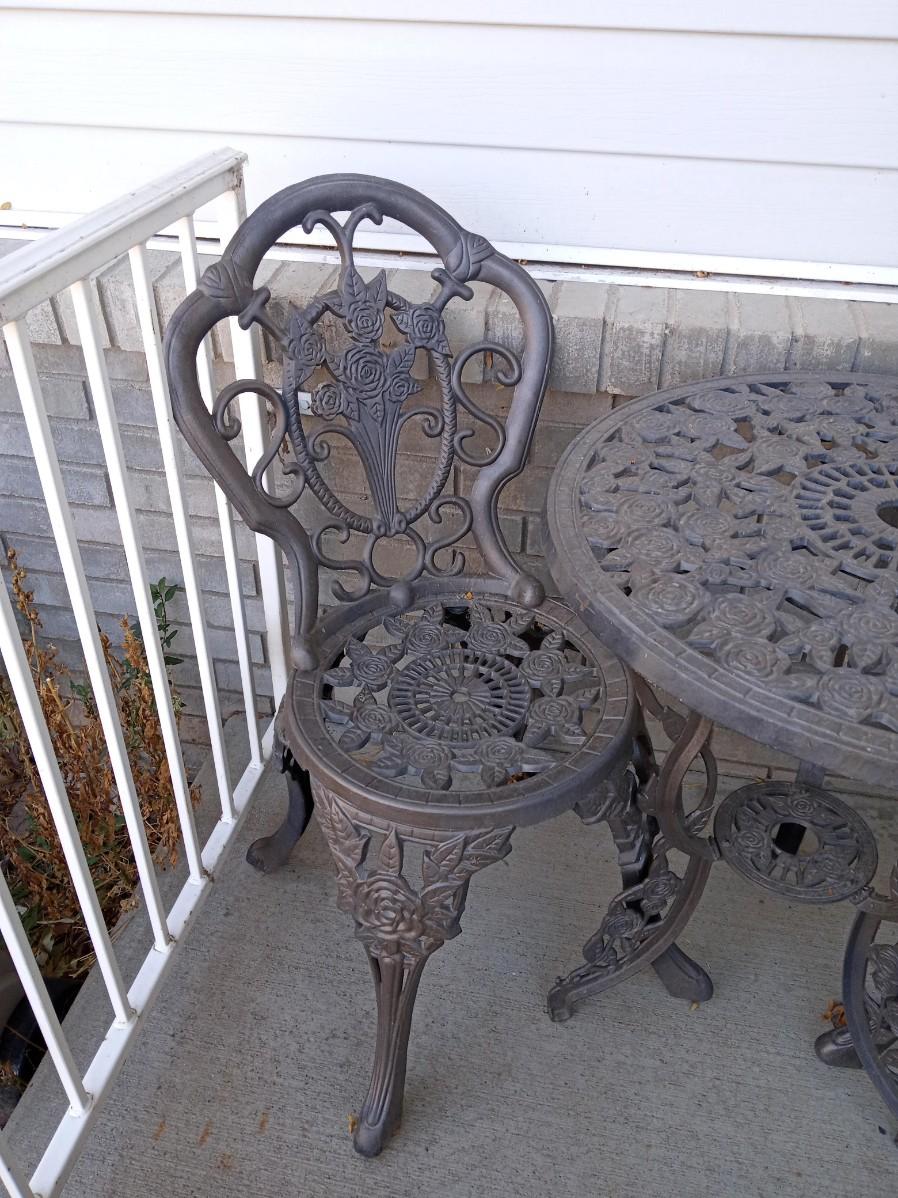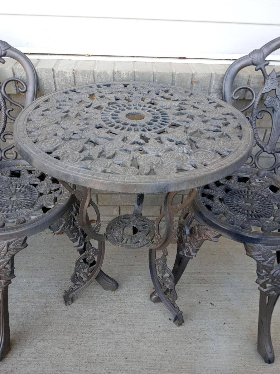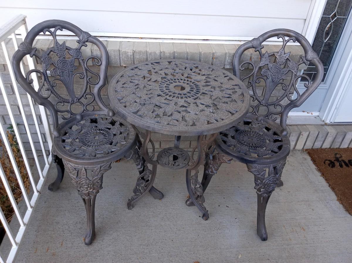 IRON PATIO TABLE WITH 2 IRON CHAIRS