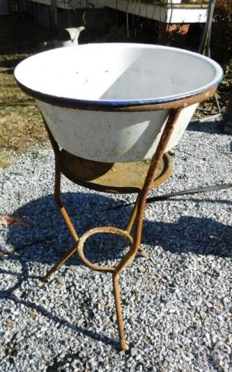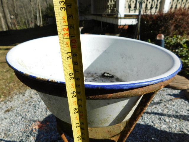 Iron Plant Stand with Enamel Bowl 16" x  30"