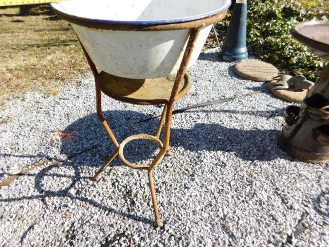 Iron Plant Stand with Enamel Bowl 16" x 30"