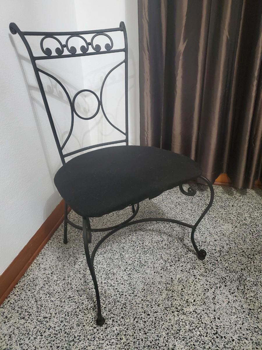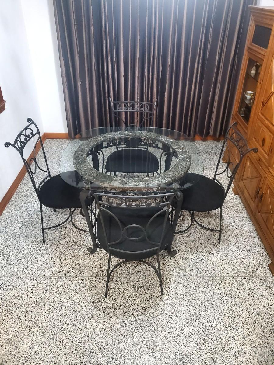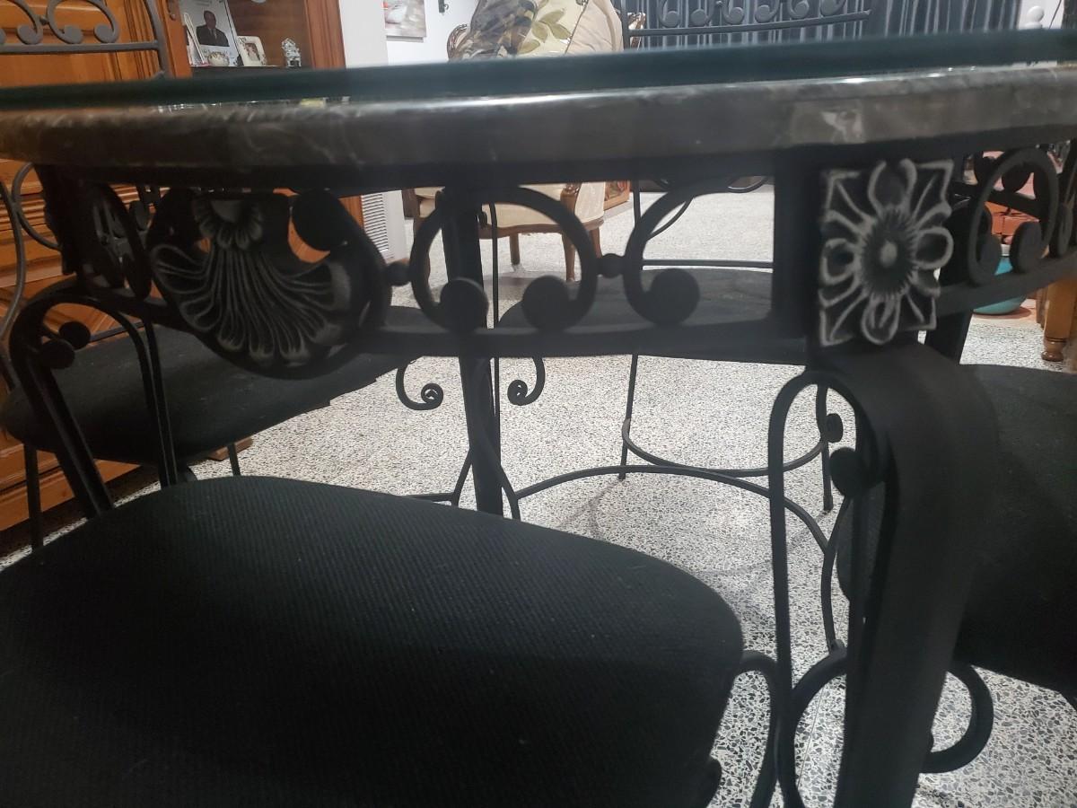 Iron Table Set with 4 Chairs and Glass Top in Good Condition