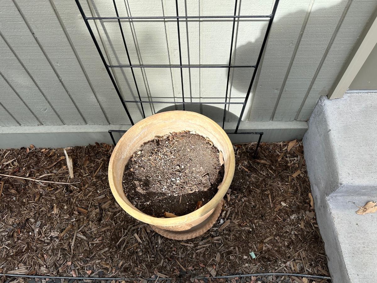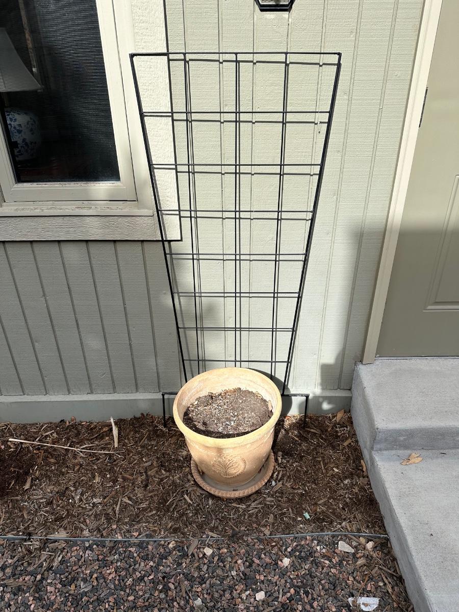 IRON TRELLIS AND TERRACOTTA FLOWER POT