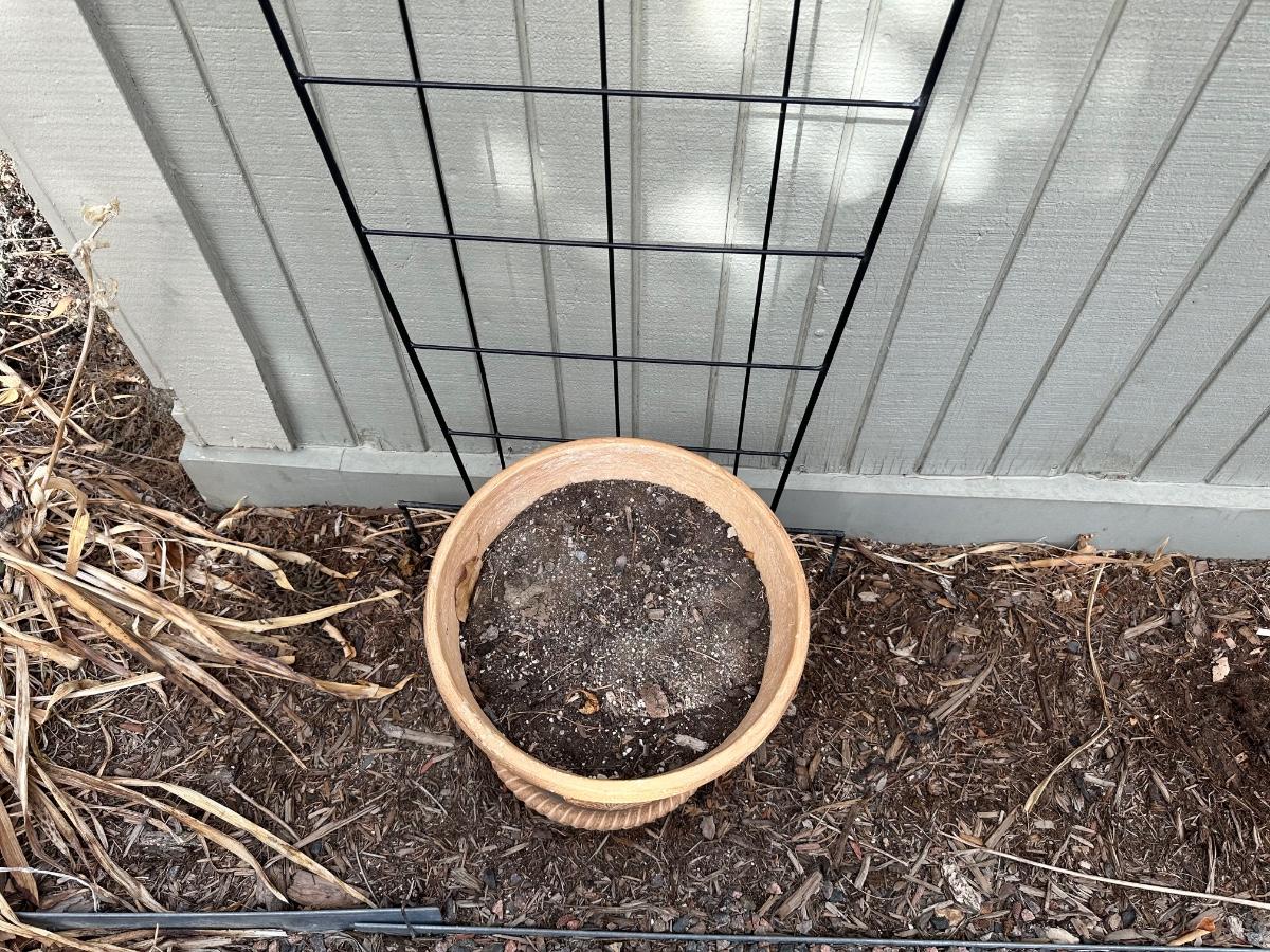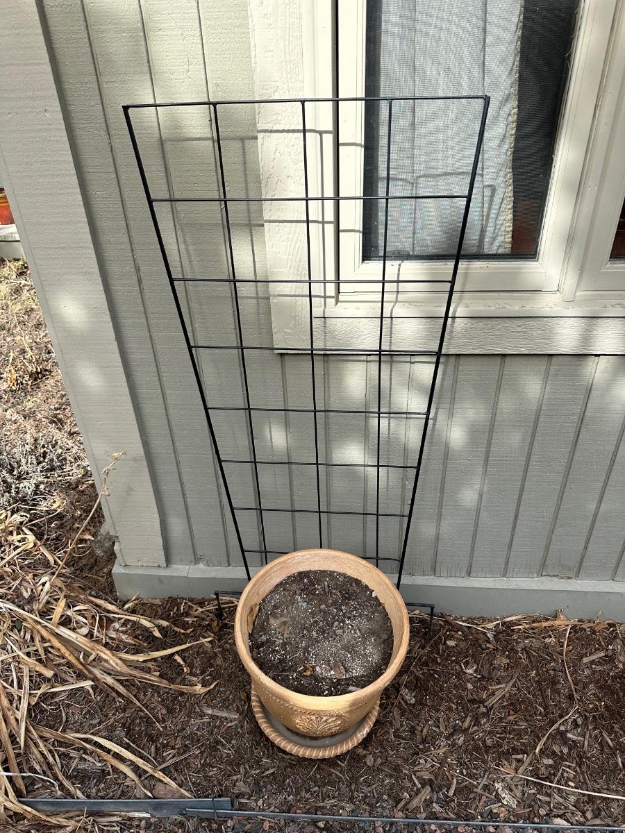 IRON TRELLIS AND TERRACOTTA FLOWER POT