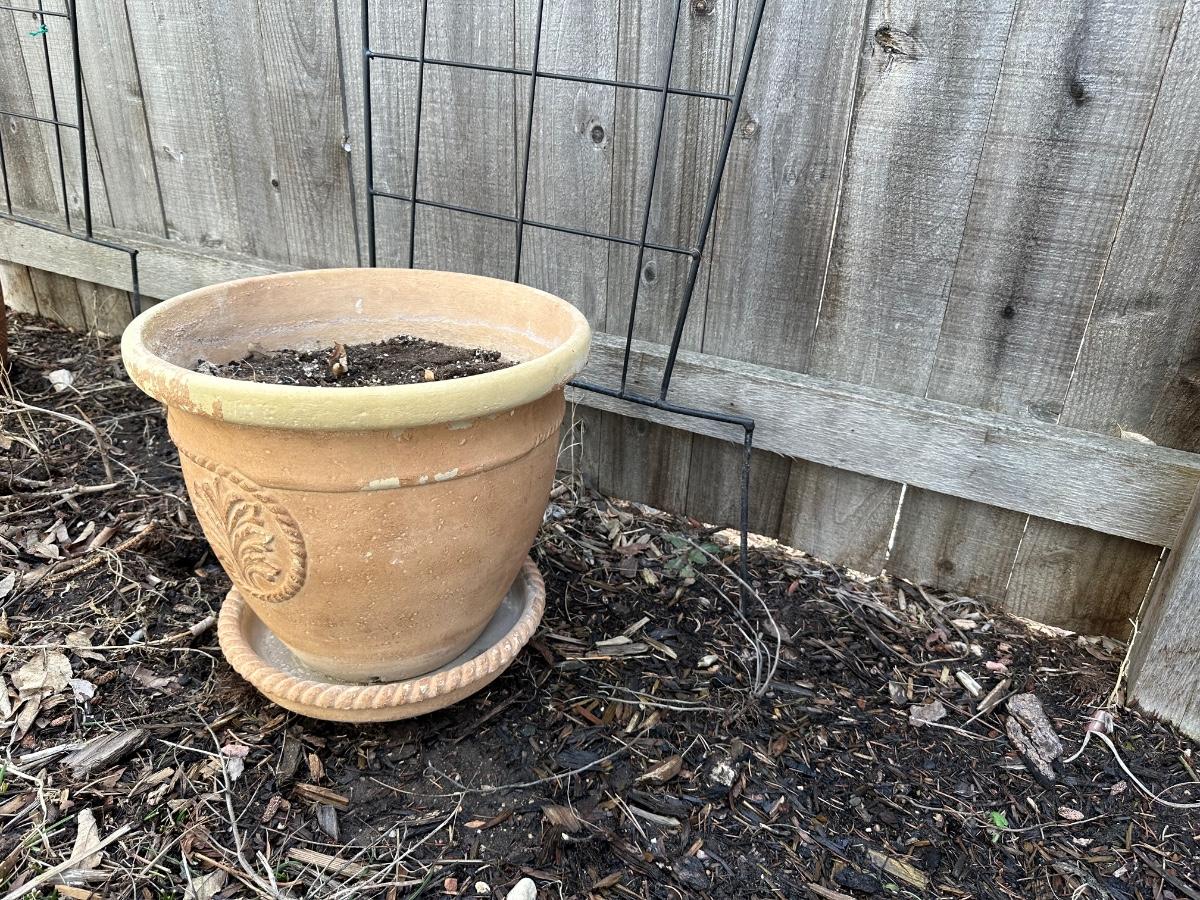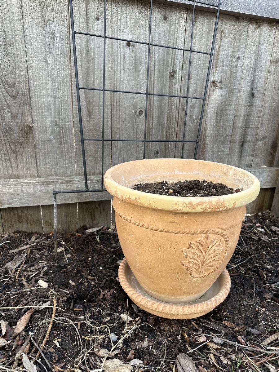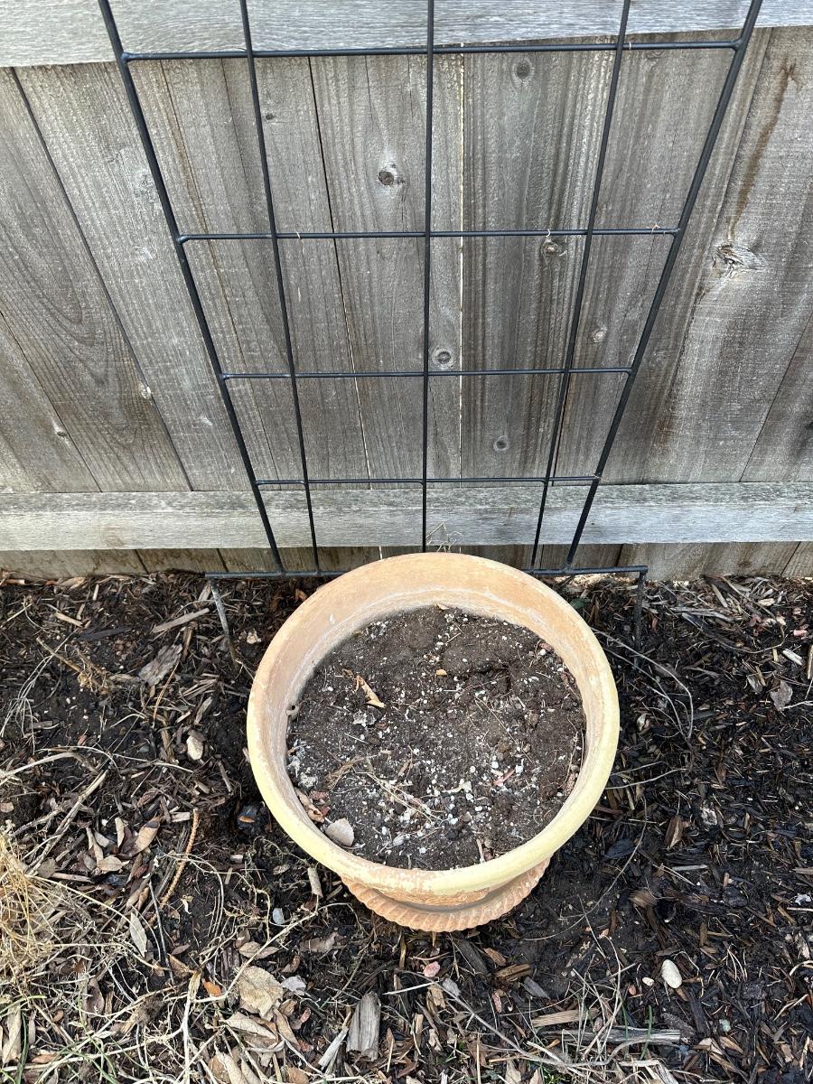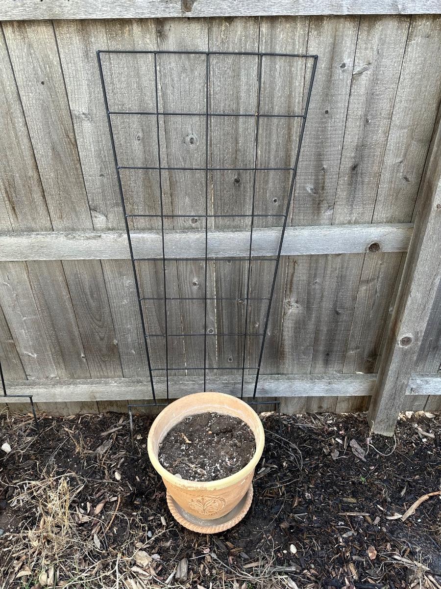 IRON TRELLIS AND TERRACOTTA FLOWER POT