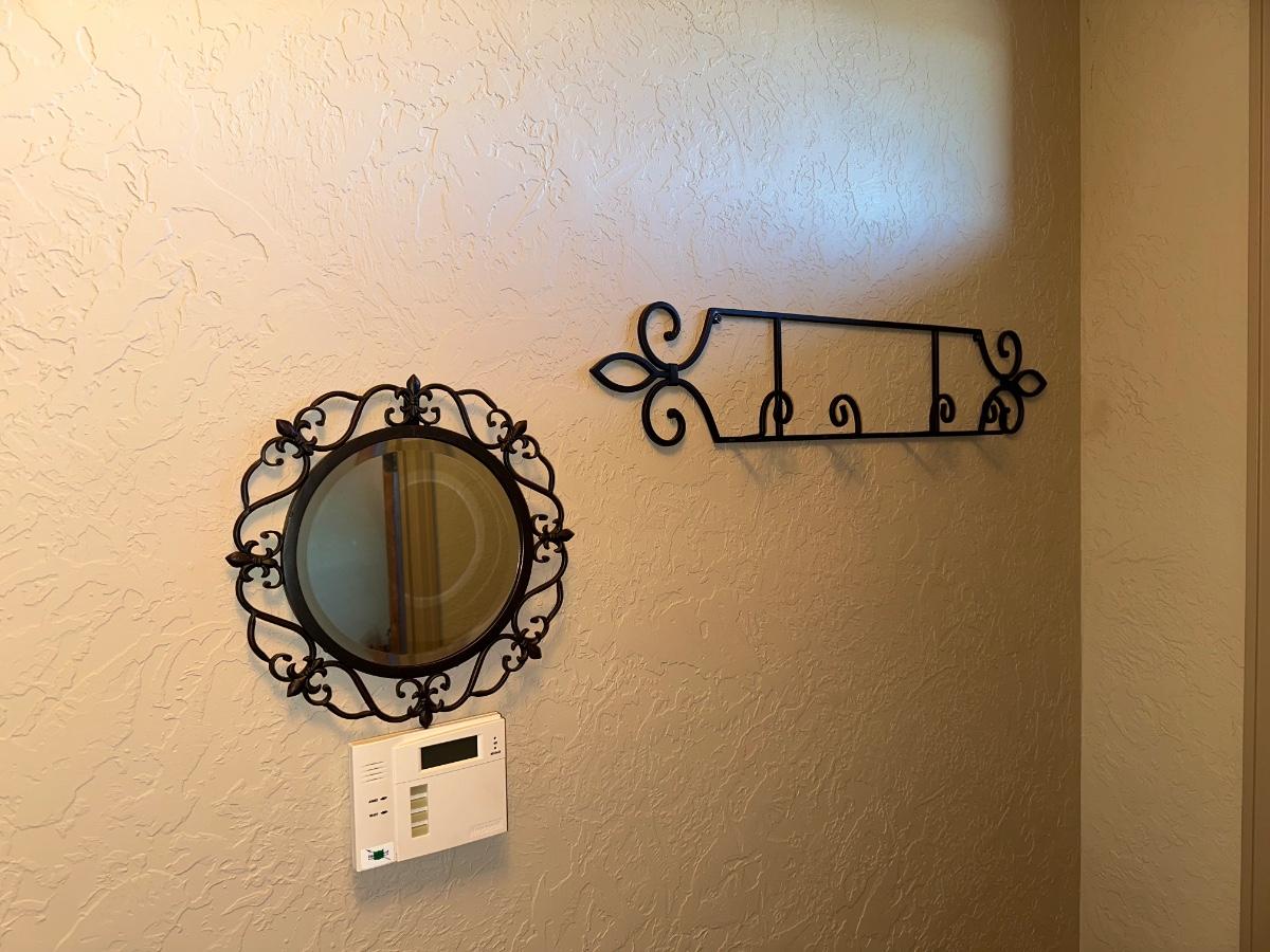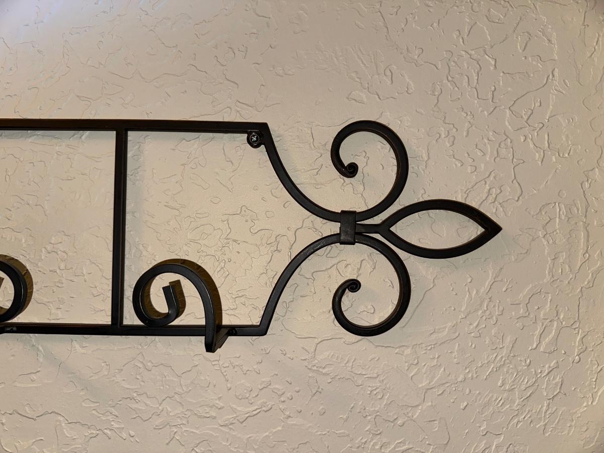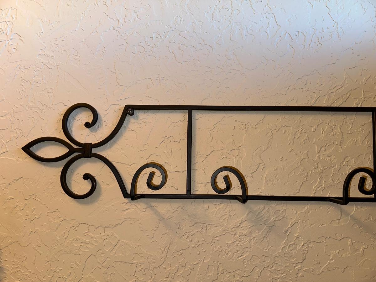 IRON WALL HUNG COAT RACK AND MIRROR PLUS A SIGN