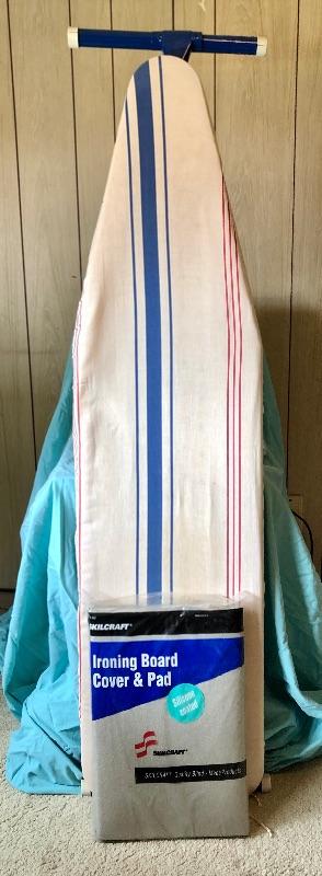 Ironing board with metal frame. Includes new foam and fabric cover.