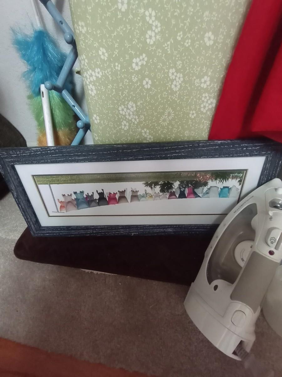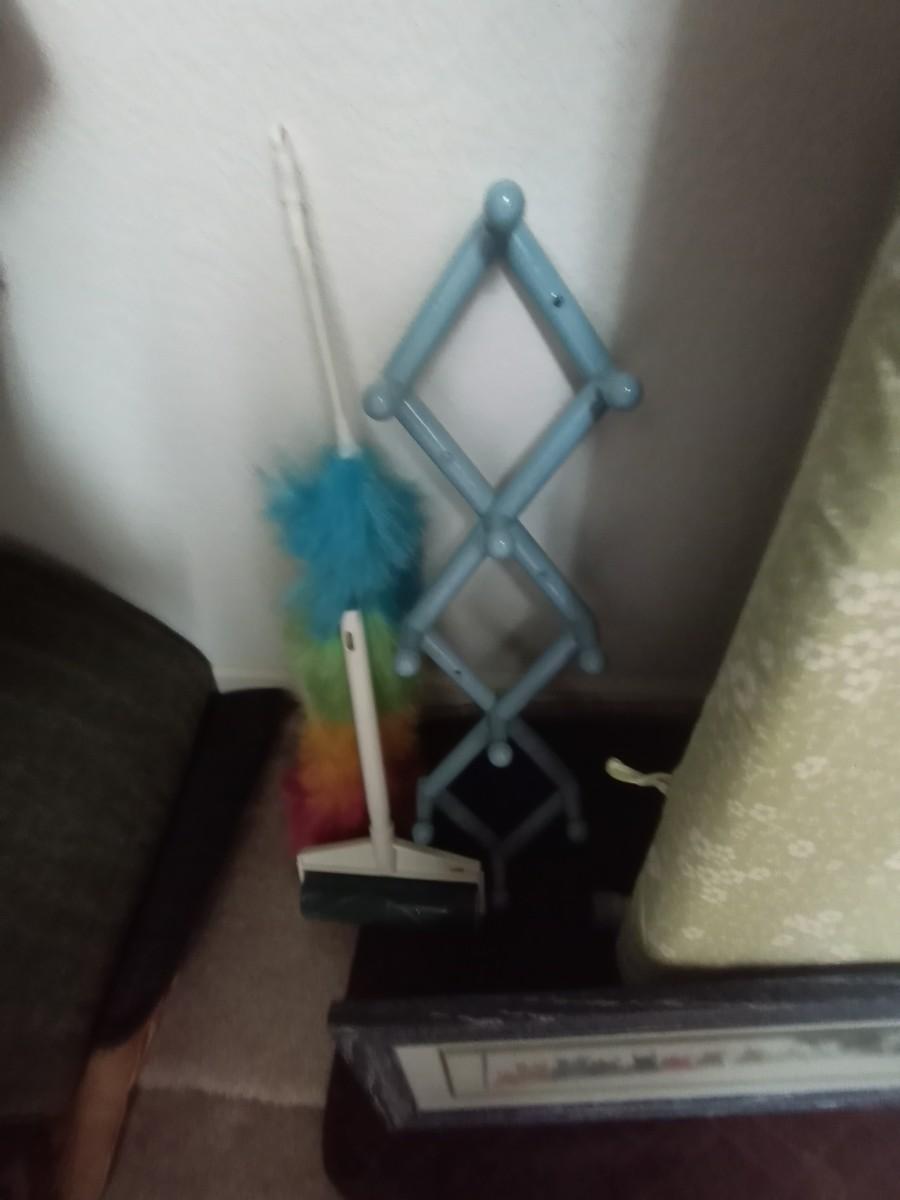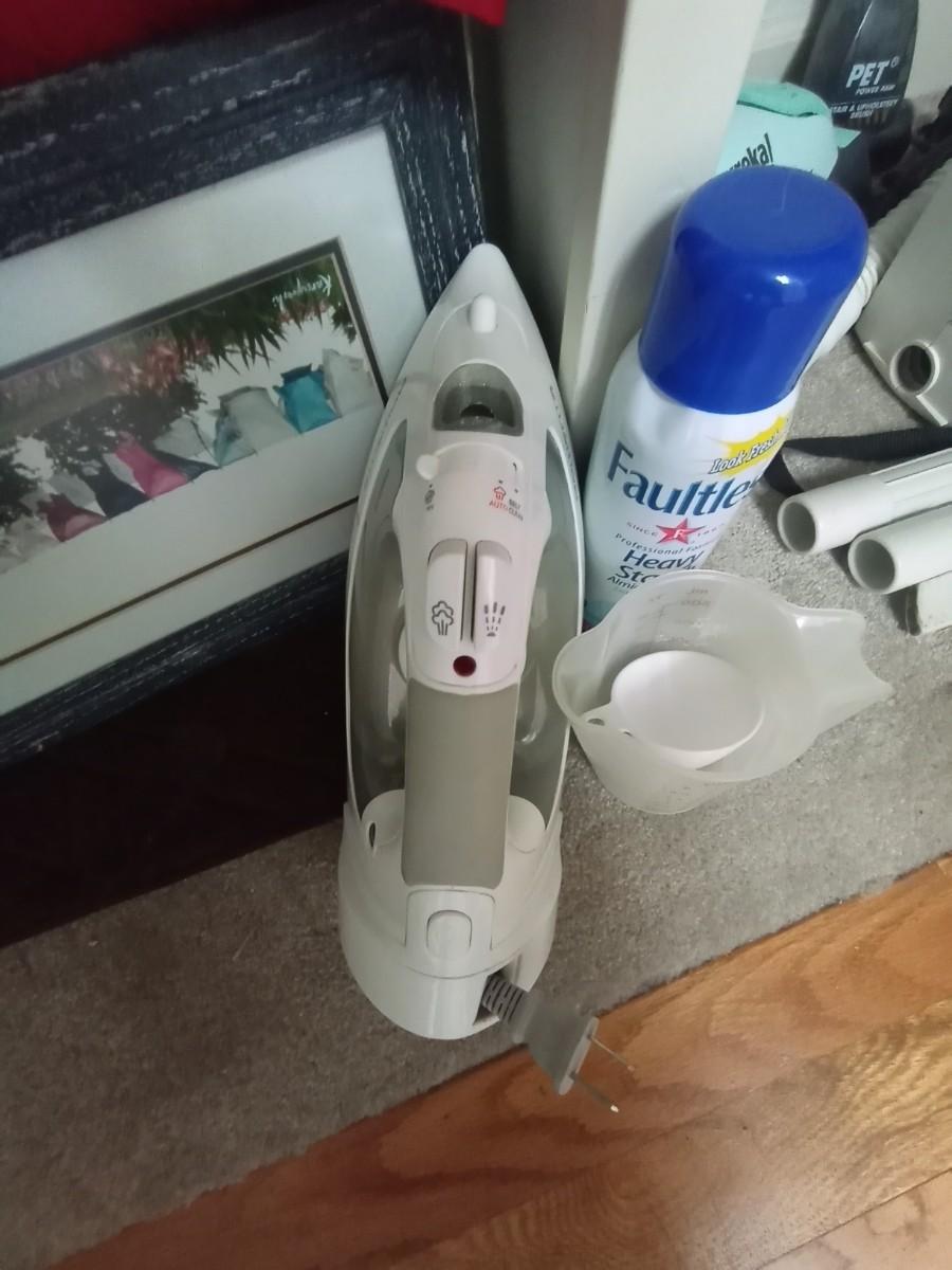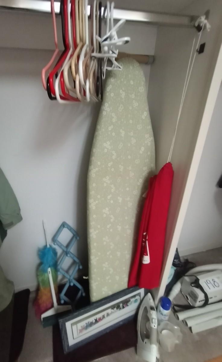 IRONING BOARD, IRON, HANGERS, DUSTER AND MORE