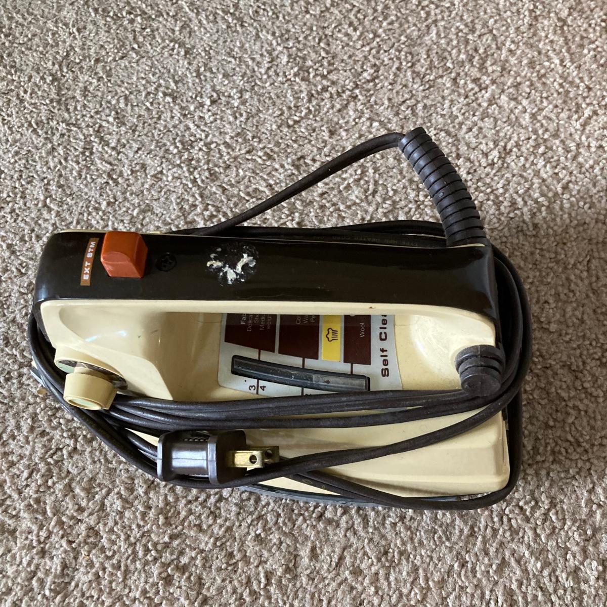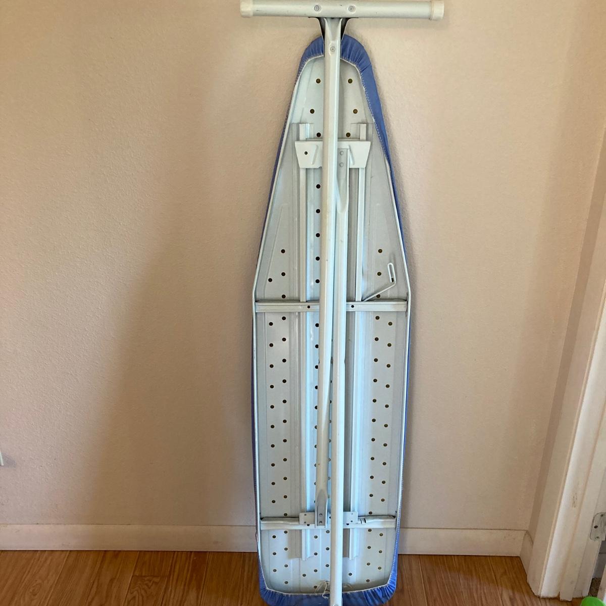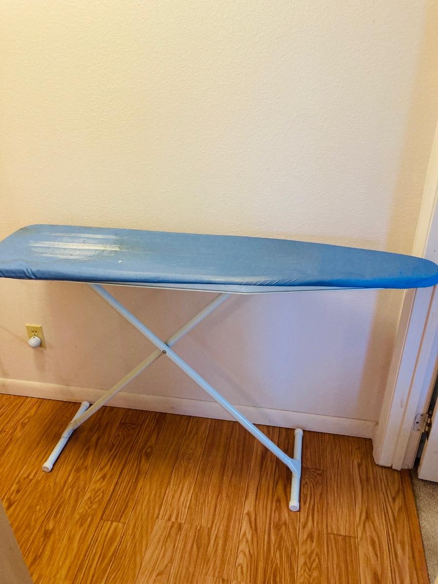 Ironing Board with two irons. Irons power on when plugged in. Ironing Board in good condition but could use a pad replacement.