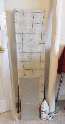 LOT 159 IRONING BOARD, MATERIAL & MORE
