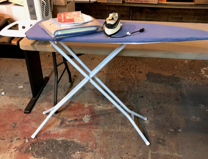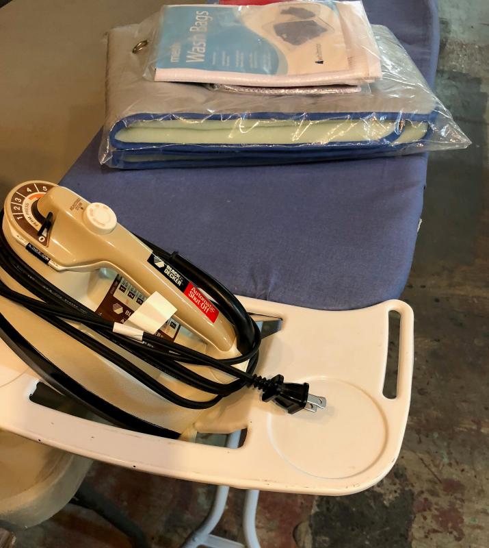 This lot includes an Ironing Board...garments bags..unused and a Steam Iron...and an Ironing Blanket...Everything you need to press your clothes...