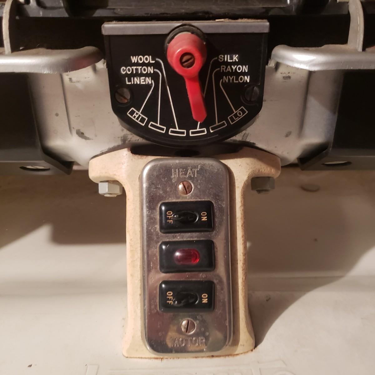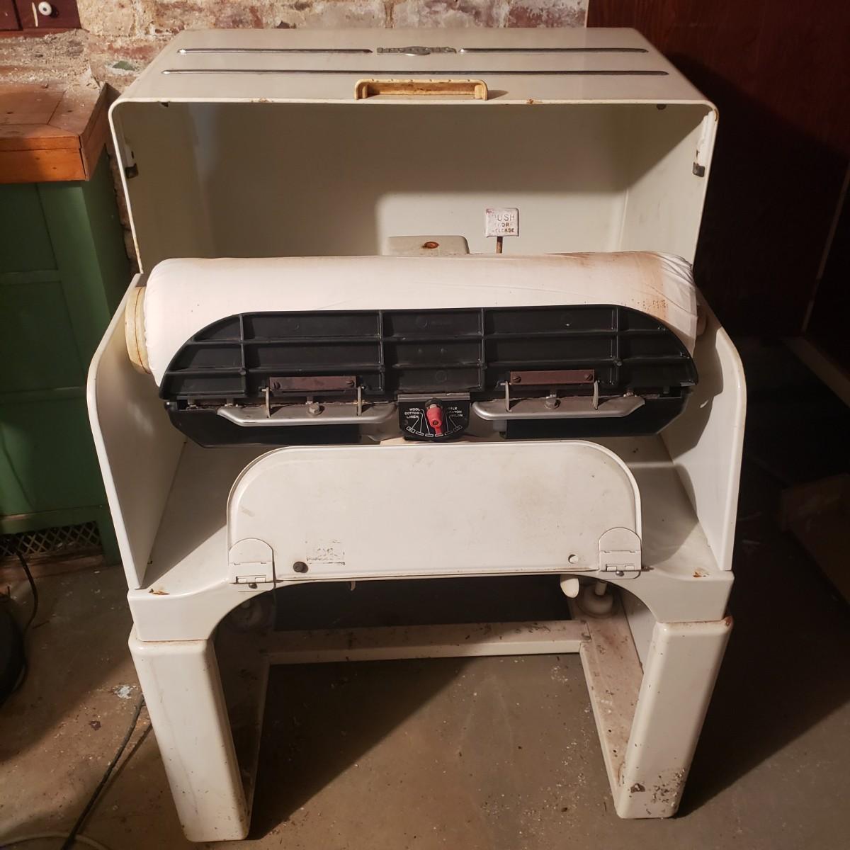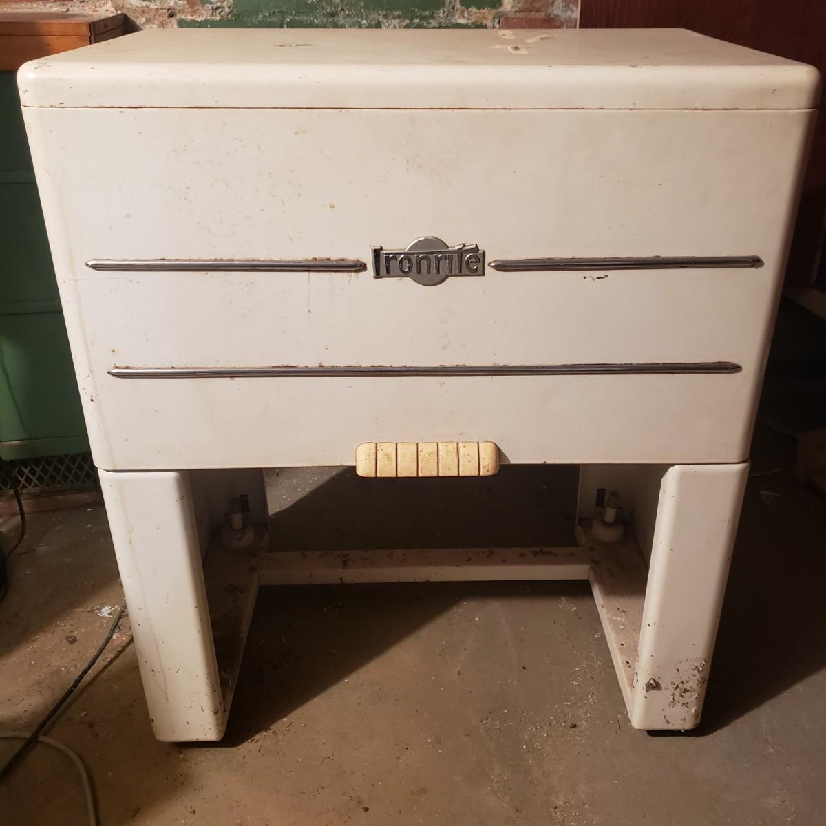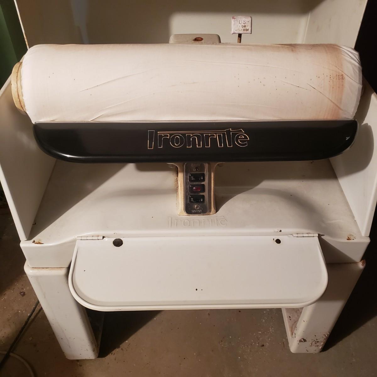 Head back in time and get your linens pressed! This is an Ironrite automatic iron. It still works! They don't make them like this anymore.