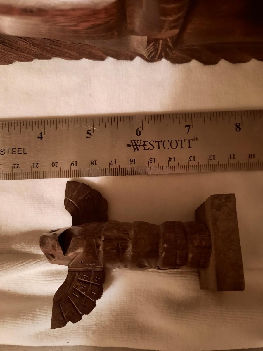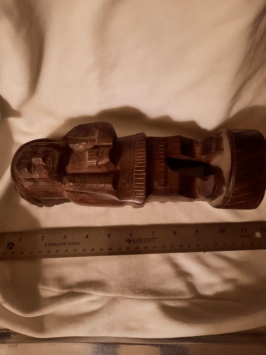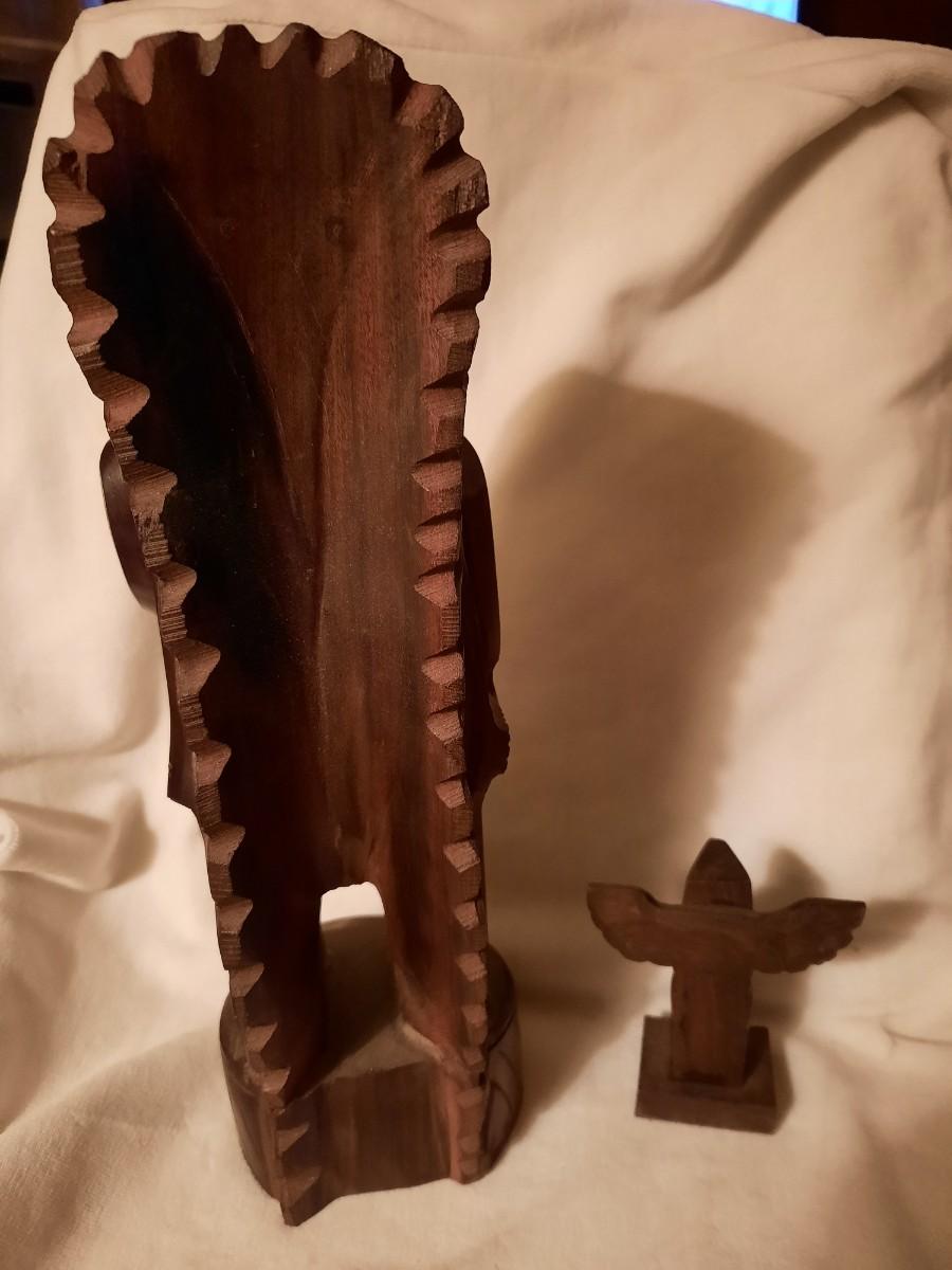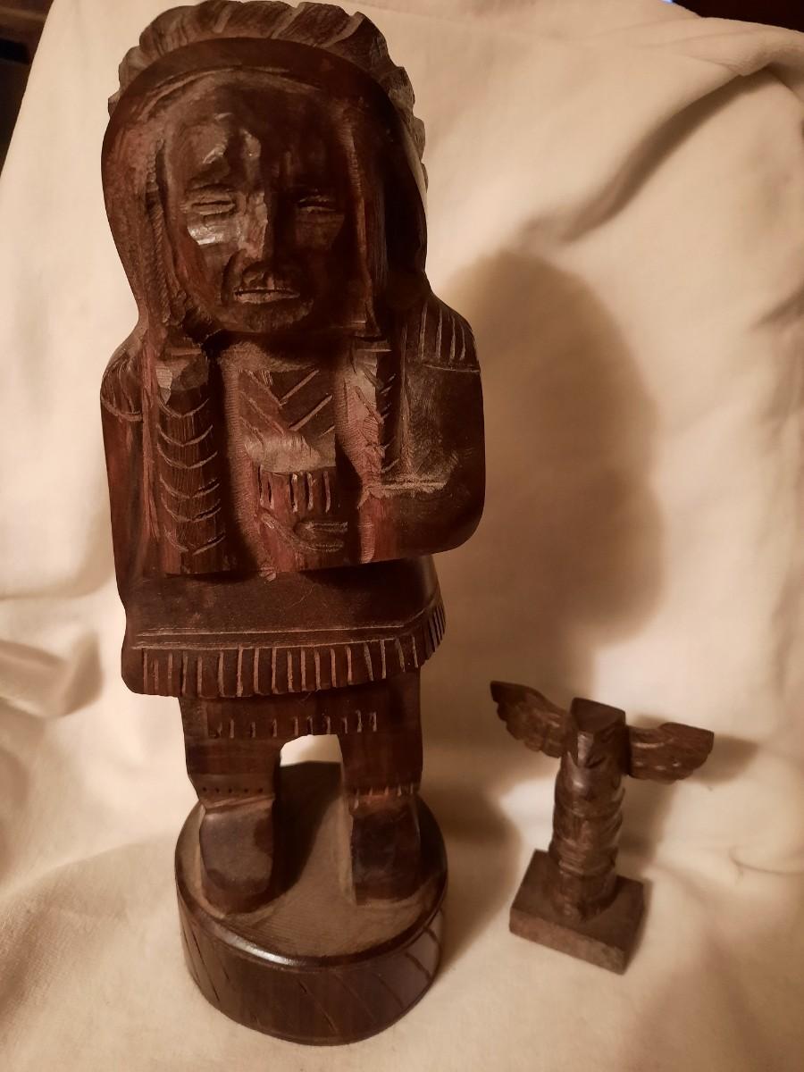 Large heavy carved ironwood indian chief a small carved ironwood totem pole