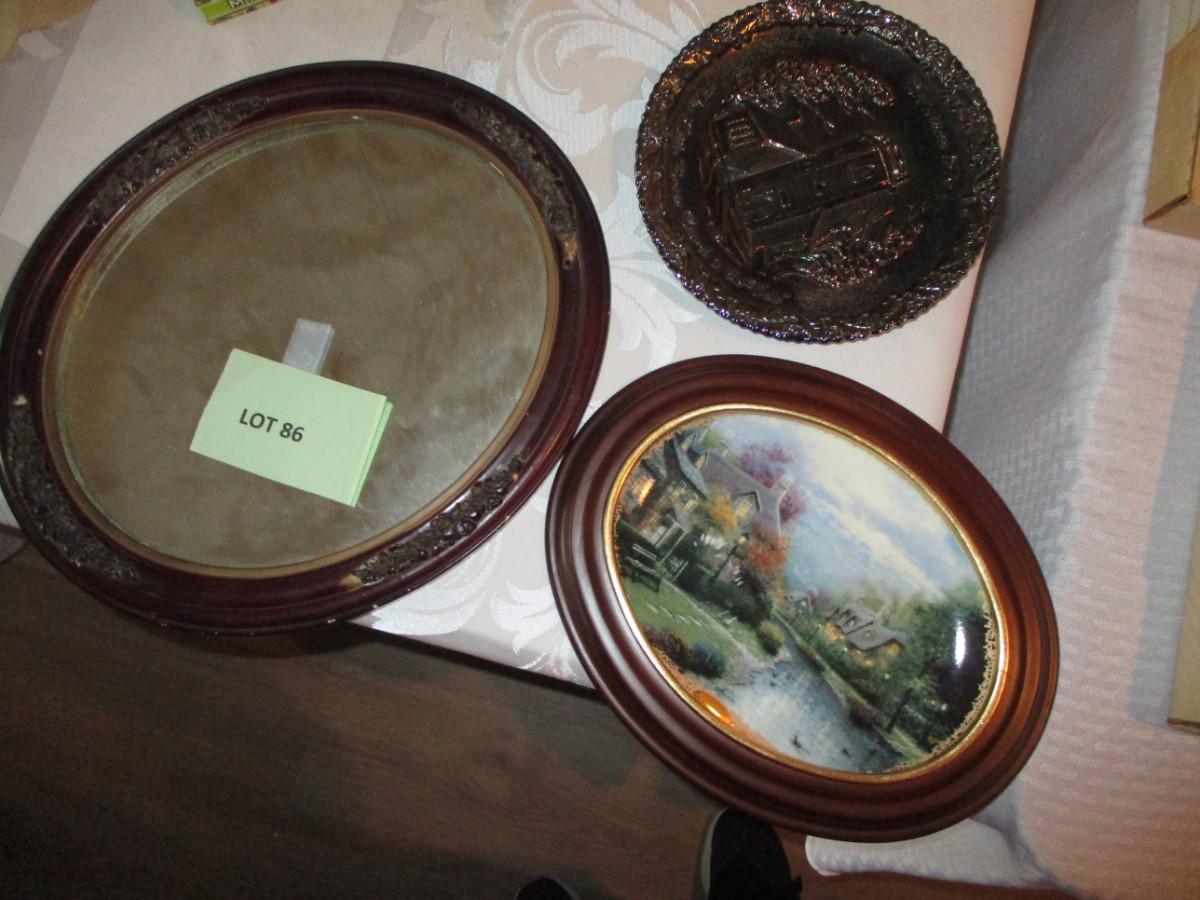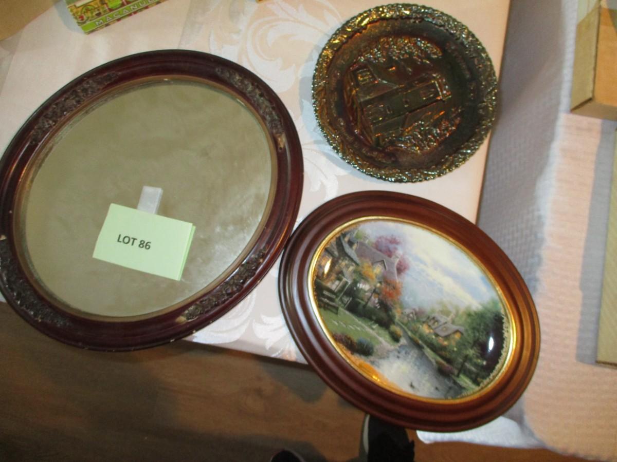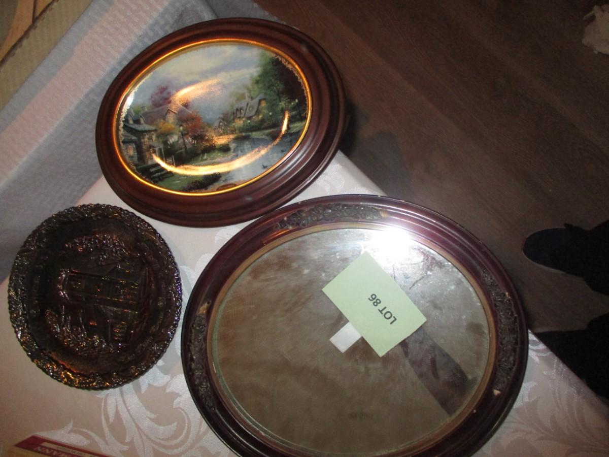 Irridescent Glass Plate, Framed collector plate and Mirror