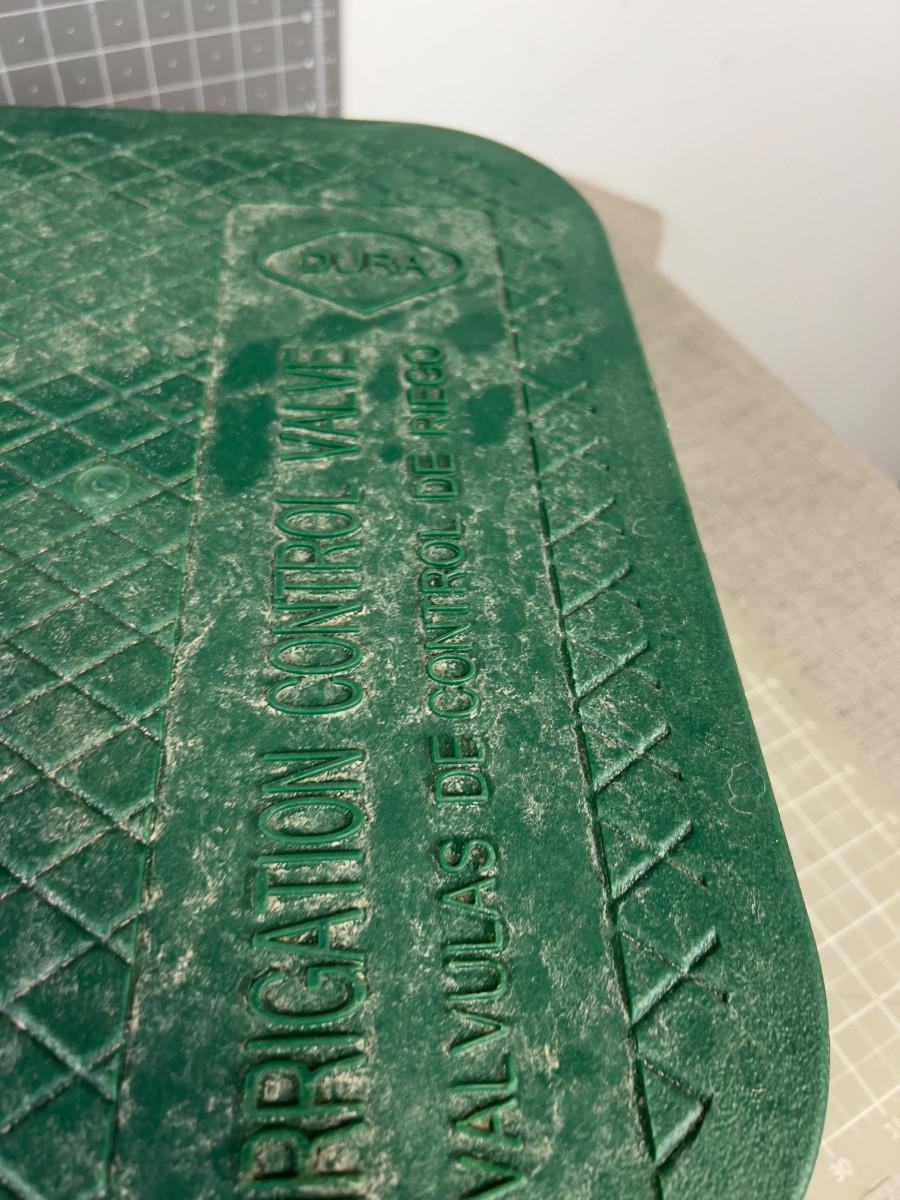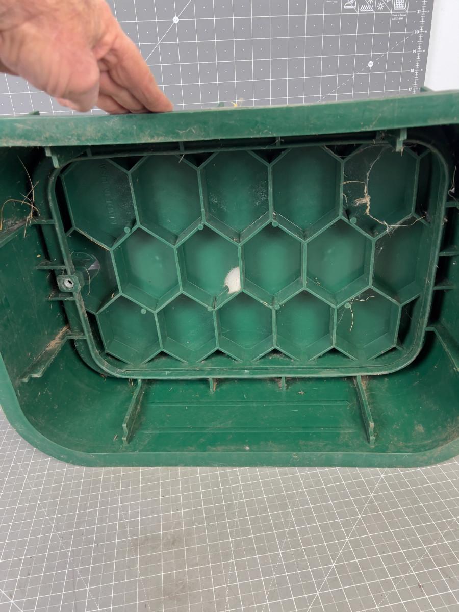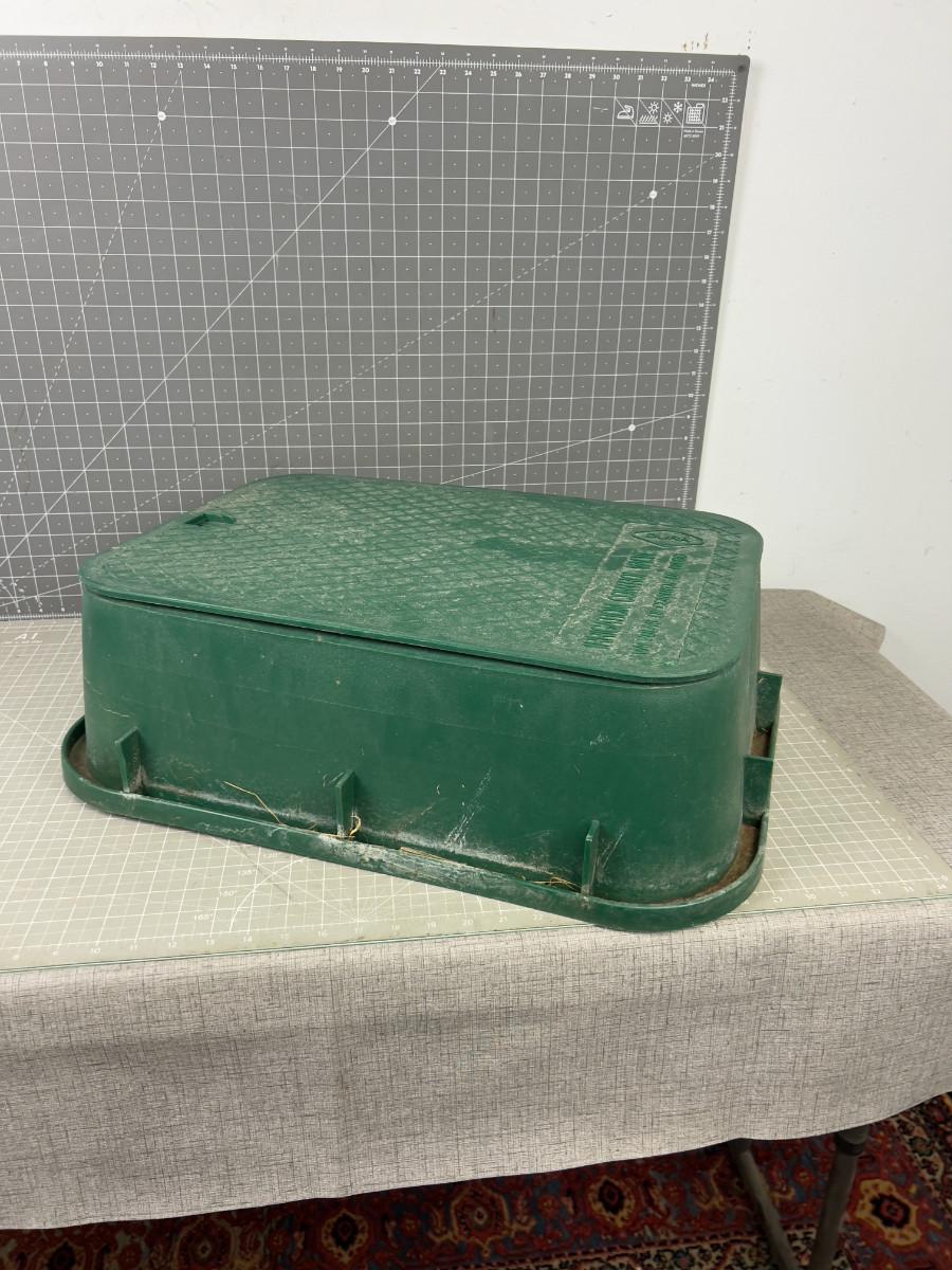 A Little Dirty from the Yard but it has NOT been Used. Measures 20 x 14 on the lid opening.