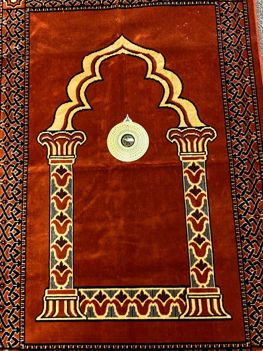 Islamic Muslim Prayer Rug Mat with Compass. Looks unused. Comes with a small booklet still attached.