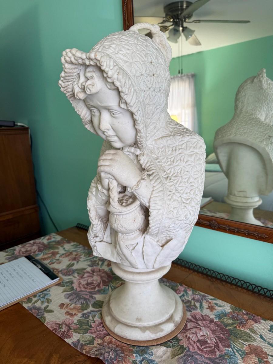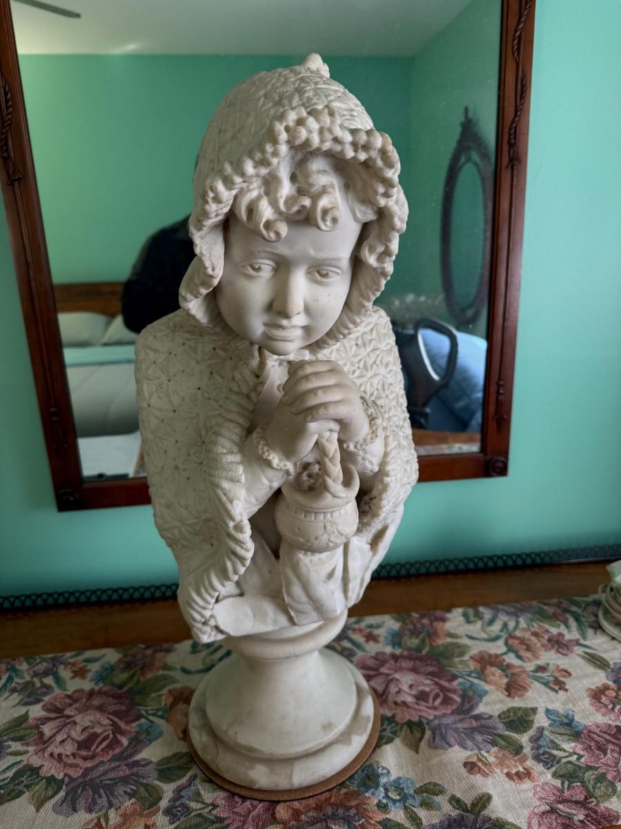 Italian 19th Century White Carrara 2-Piece Marble Statue, Signed Pietro Lazzarini c1800's Approx 25" Tall Preowned from an Estate. Very Heavy. (PICKUP ONLY BY APPOINTMENT IN BRICK, NJ)