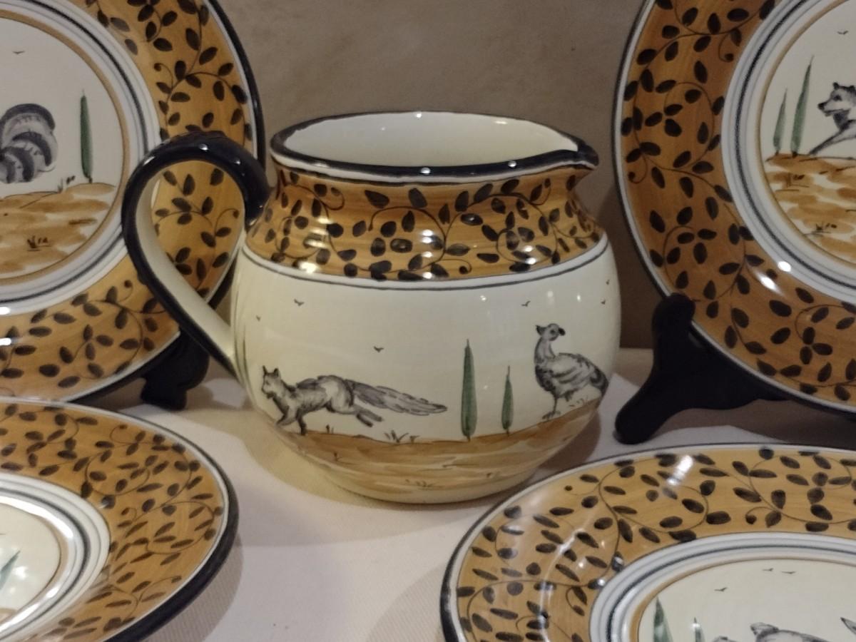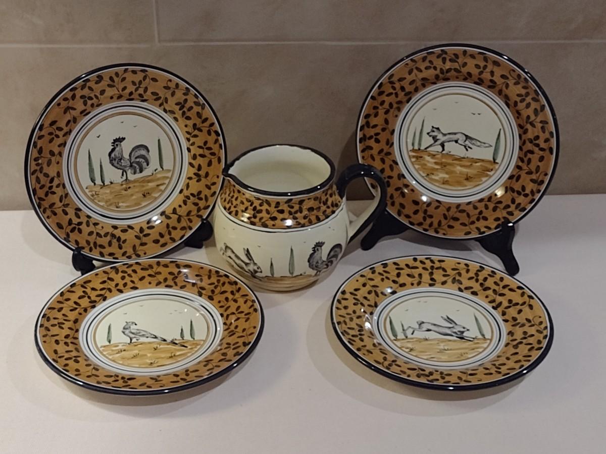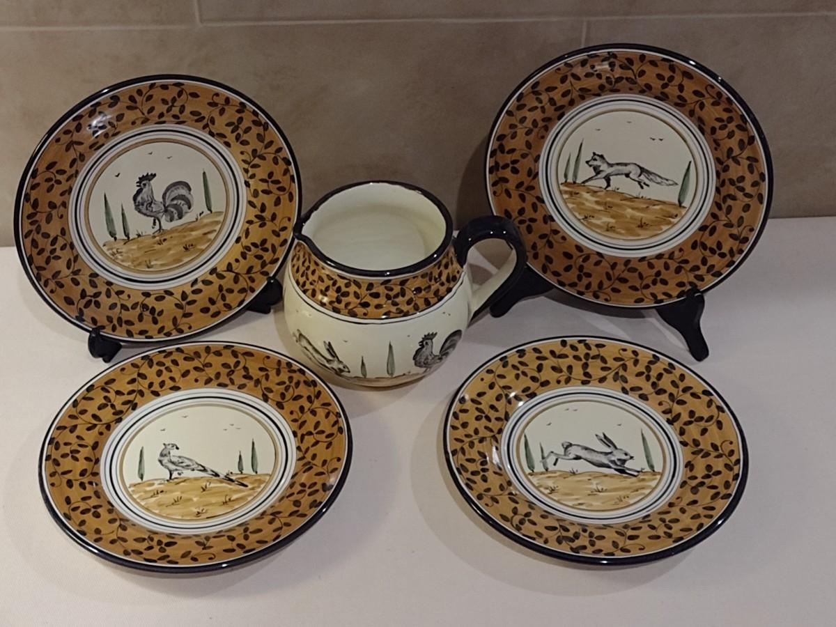 Hand Painted Italian Ceramic Plate and Pitcher Set Wildlife Theme