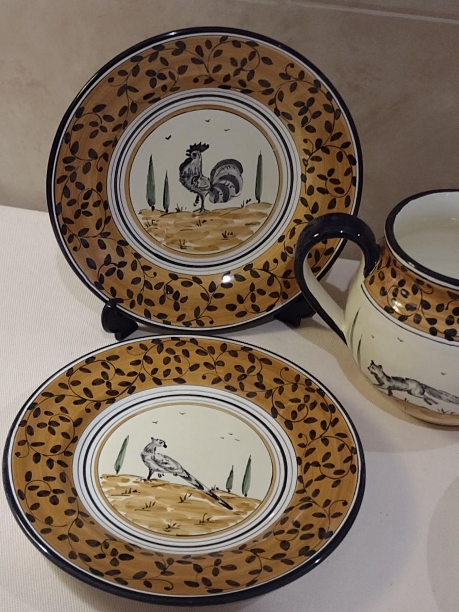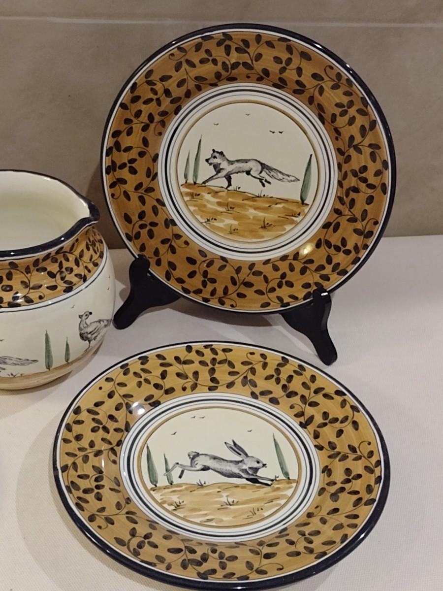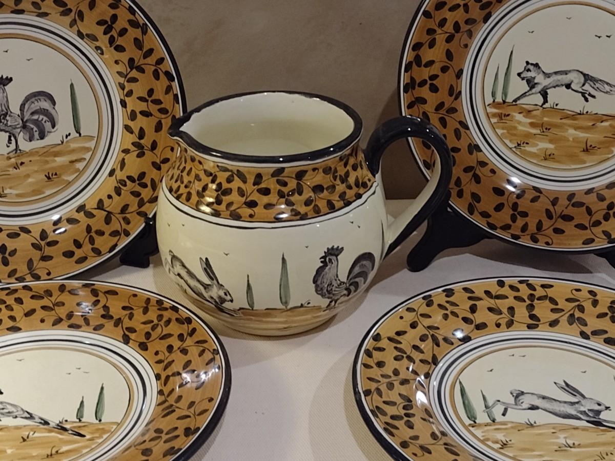 Hand Painted Italian Ceramic Plate and Pitcher Set Wildlife Theme