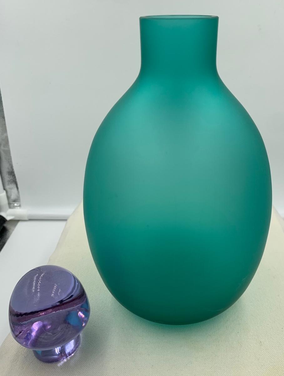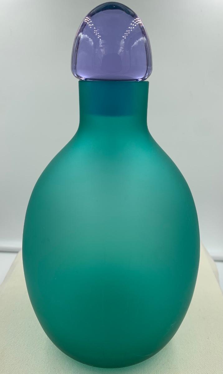 This beautiful jar is 8.5" H x 4.5”W. Blown in Italy.