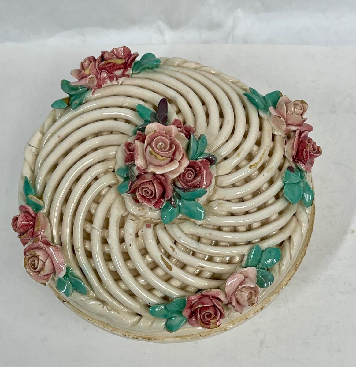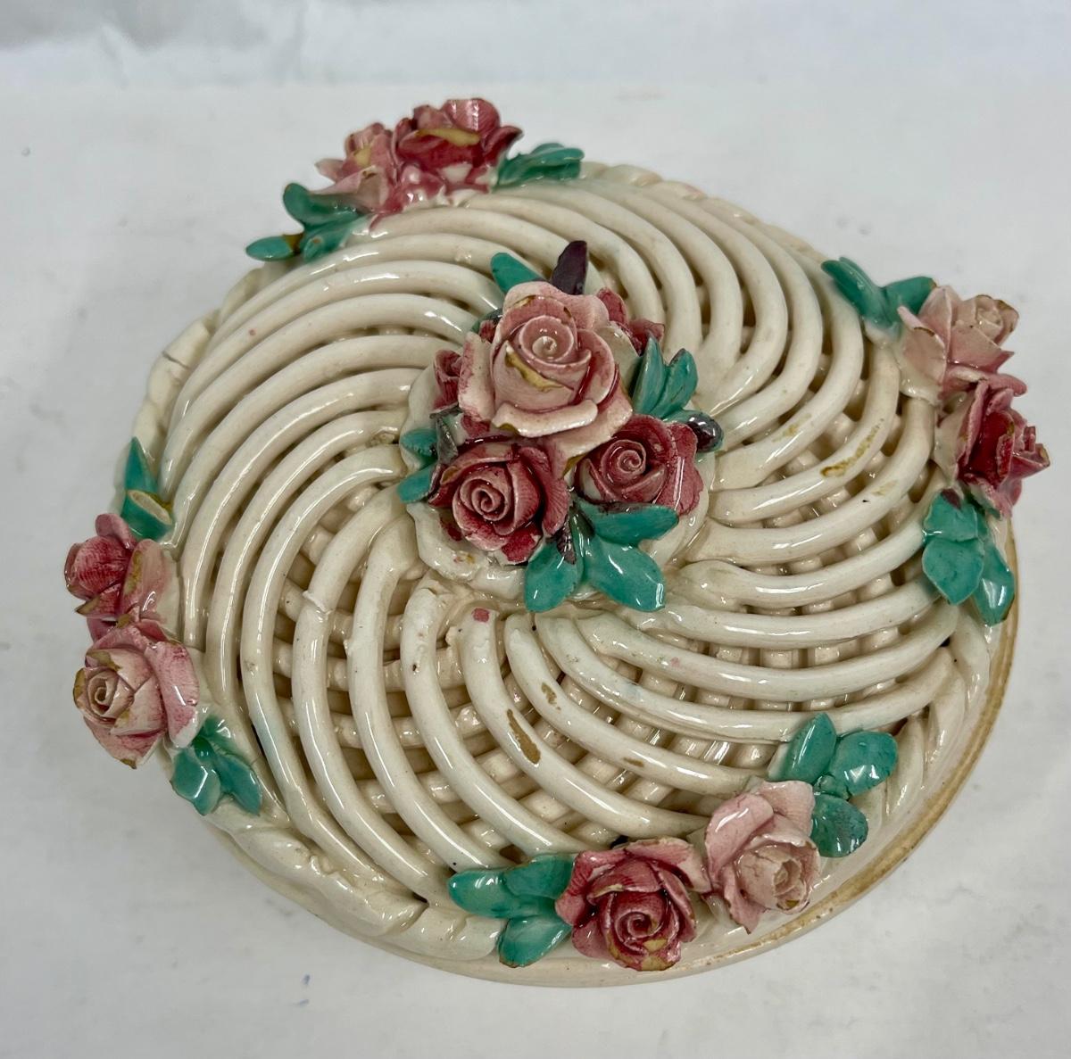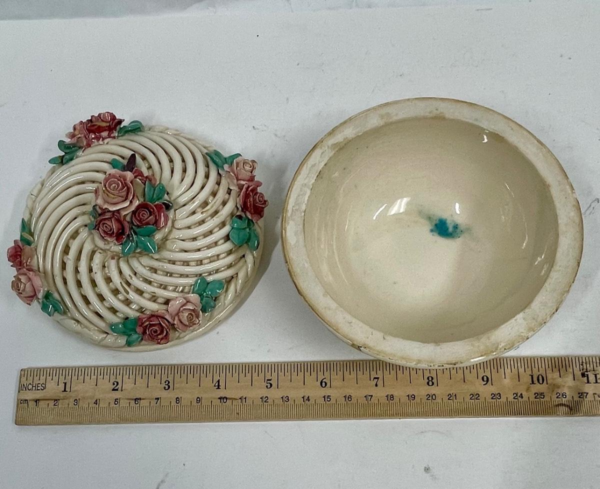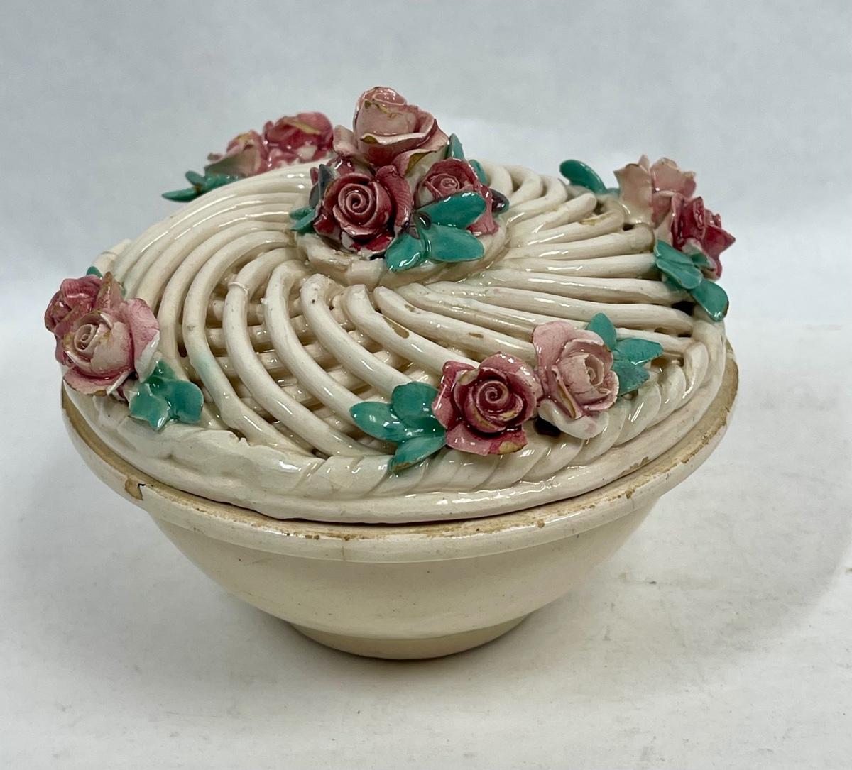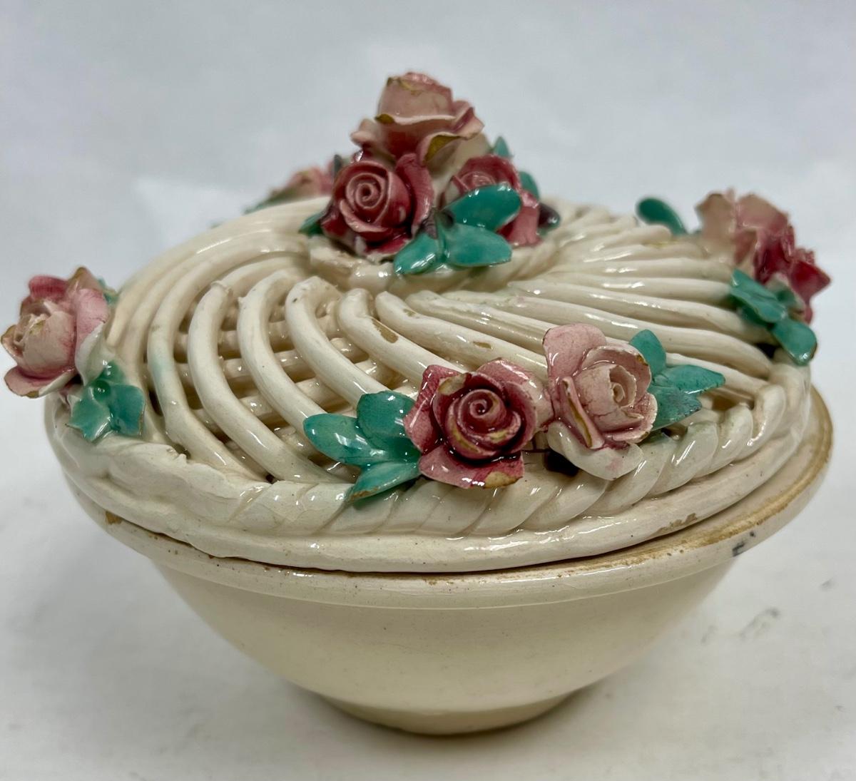 Italian lidded bowl spaghetti ceramic with porcelain roses