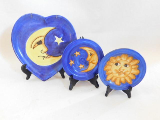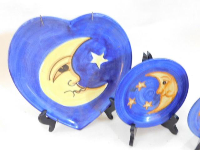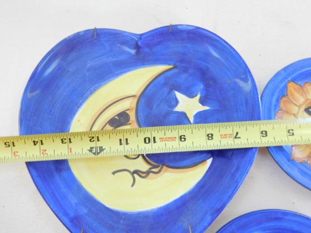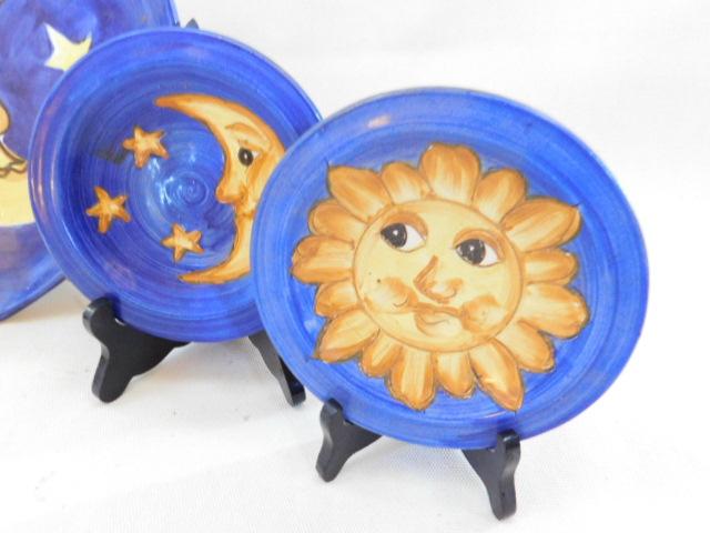 Italian Ceramic Celestial Blue Collector Plates Moon, Stars, and Sun