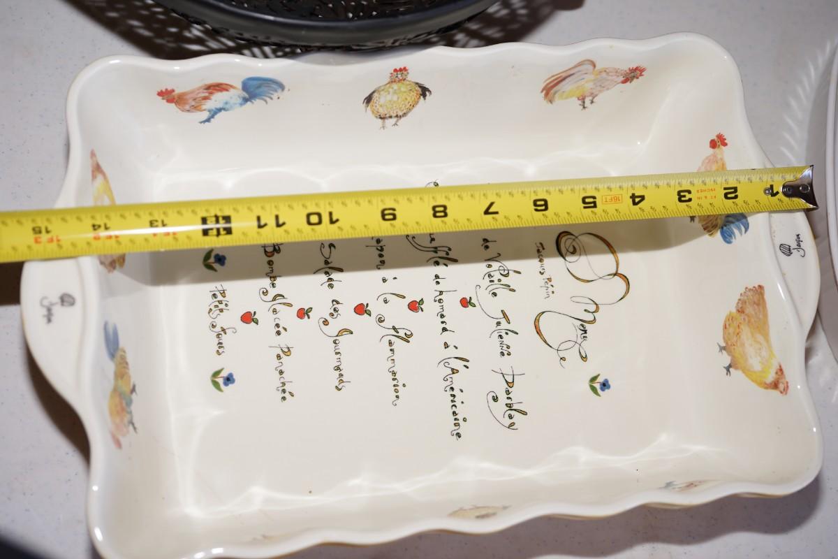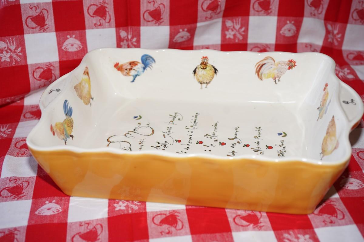 ITALIAN CERAMIC SWEET CASSEROLE DISH W/ FUN CHICKEN PATTERN & VERSE. LIKE NEW. MOTHER'S DAY GIFT