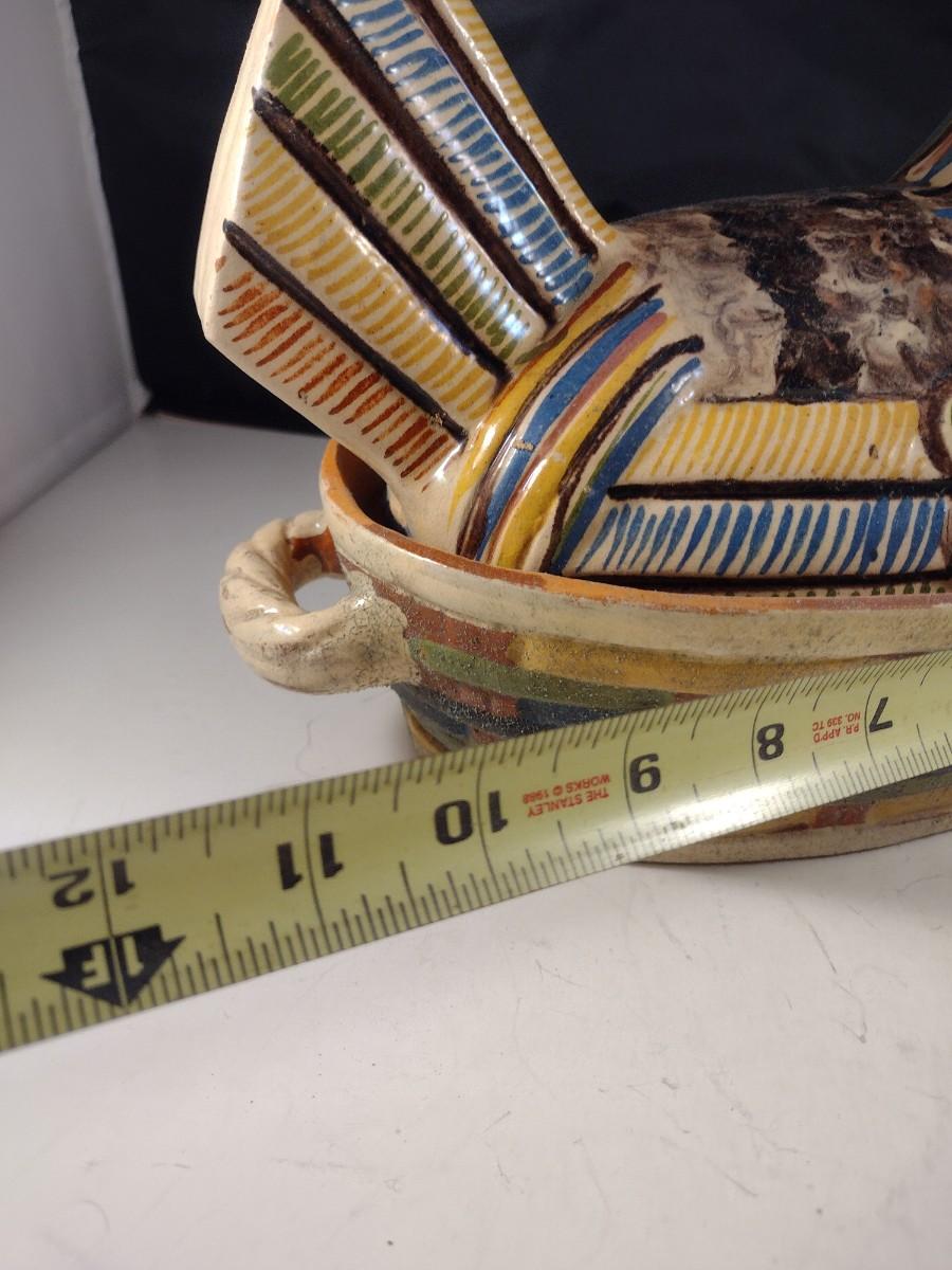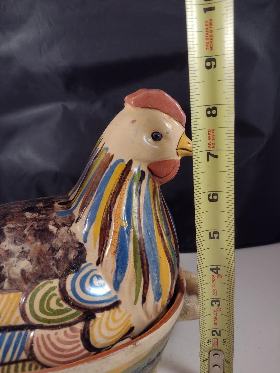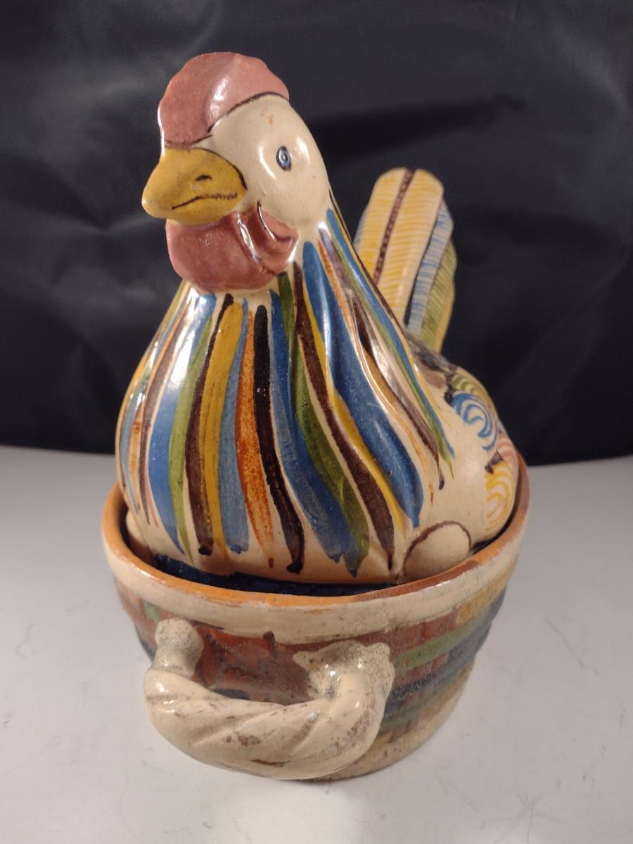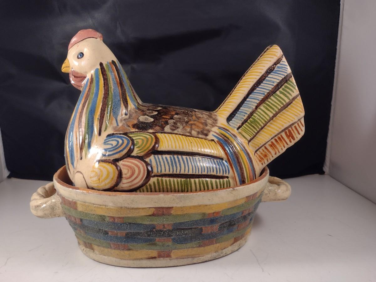 Italian Clay Pottery Hand Painted Hen on a Next Large Bowl