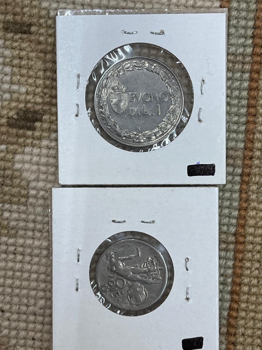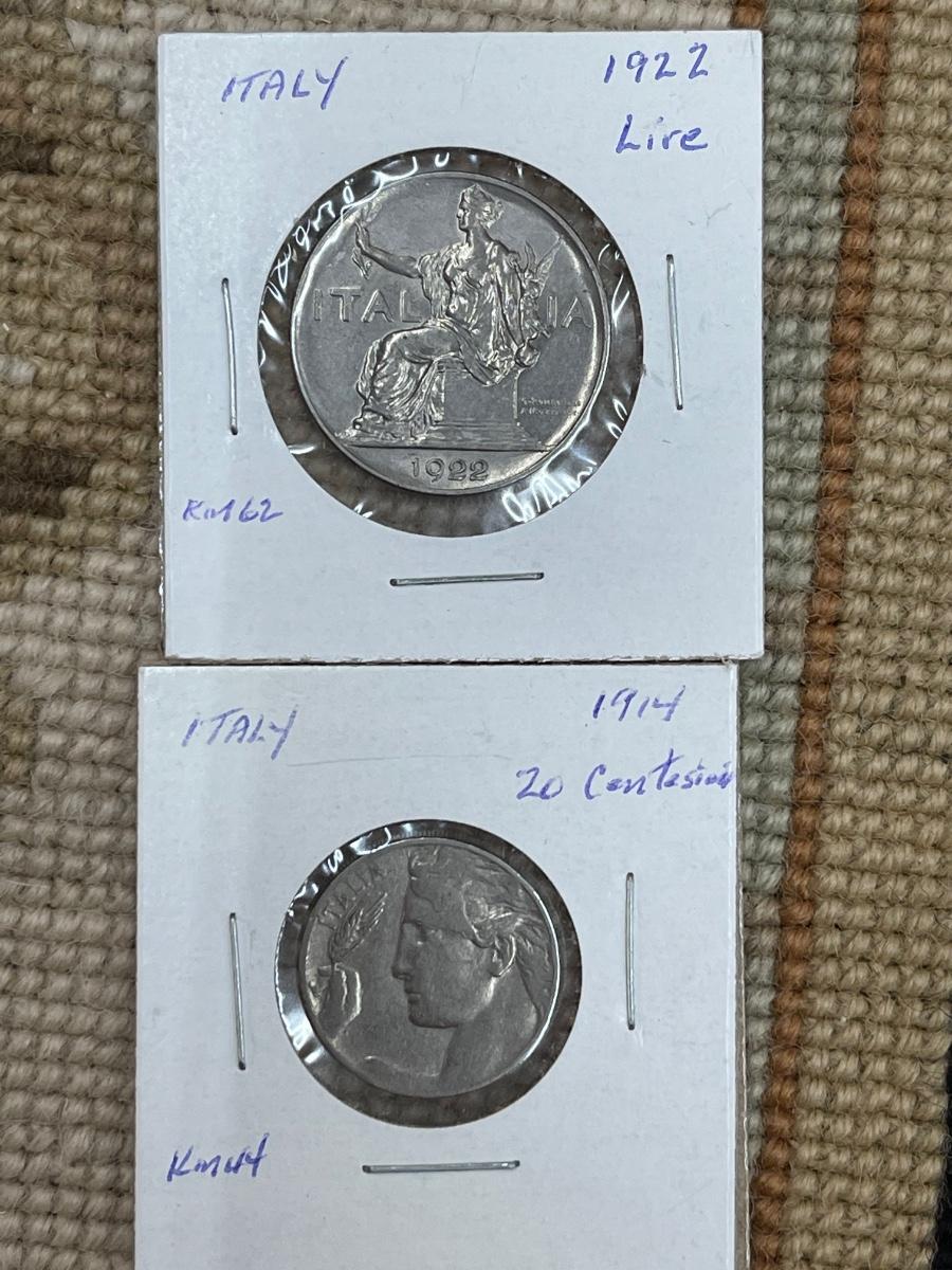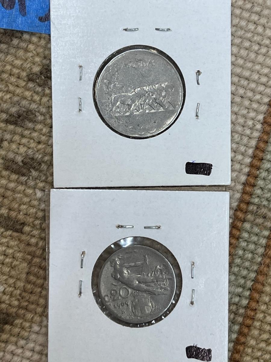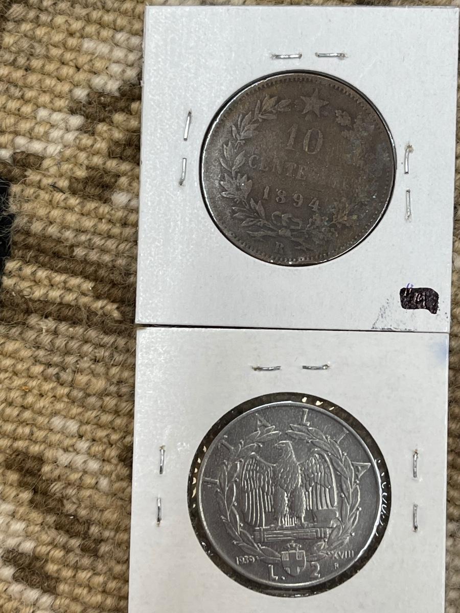 (9) vintage Italian coins - 1866M 10 centensimo, 1894R 10 centensimo, 1920 50 centensimo, 1950 5 lira, 1939 2 lira, 1909R 20 centensimo, 1923 lira, 1922 lira, 1914 20 centensimo.