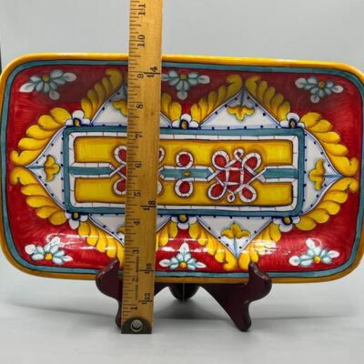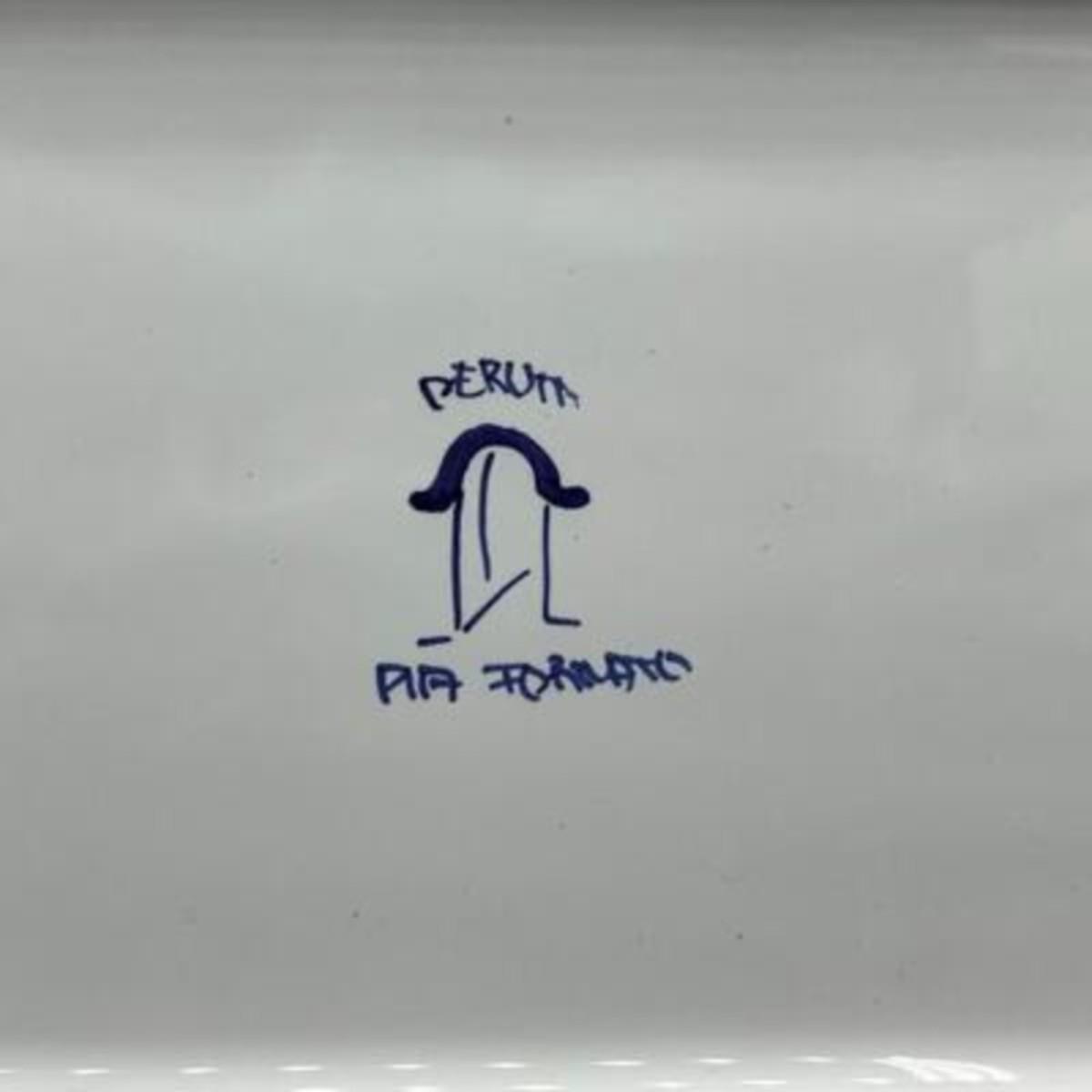 Beautiful Deruta ceramic serving dish by Italian artist Pia Formato. Looks to be a part of her Raffaellesco collection. Colorful floral geometric design. In good condition. Good size, about 14" length.