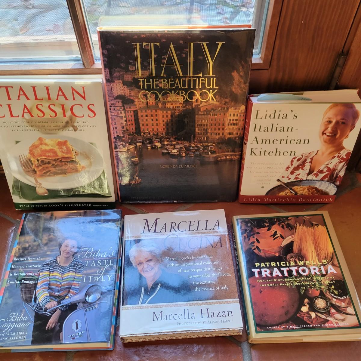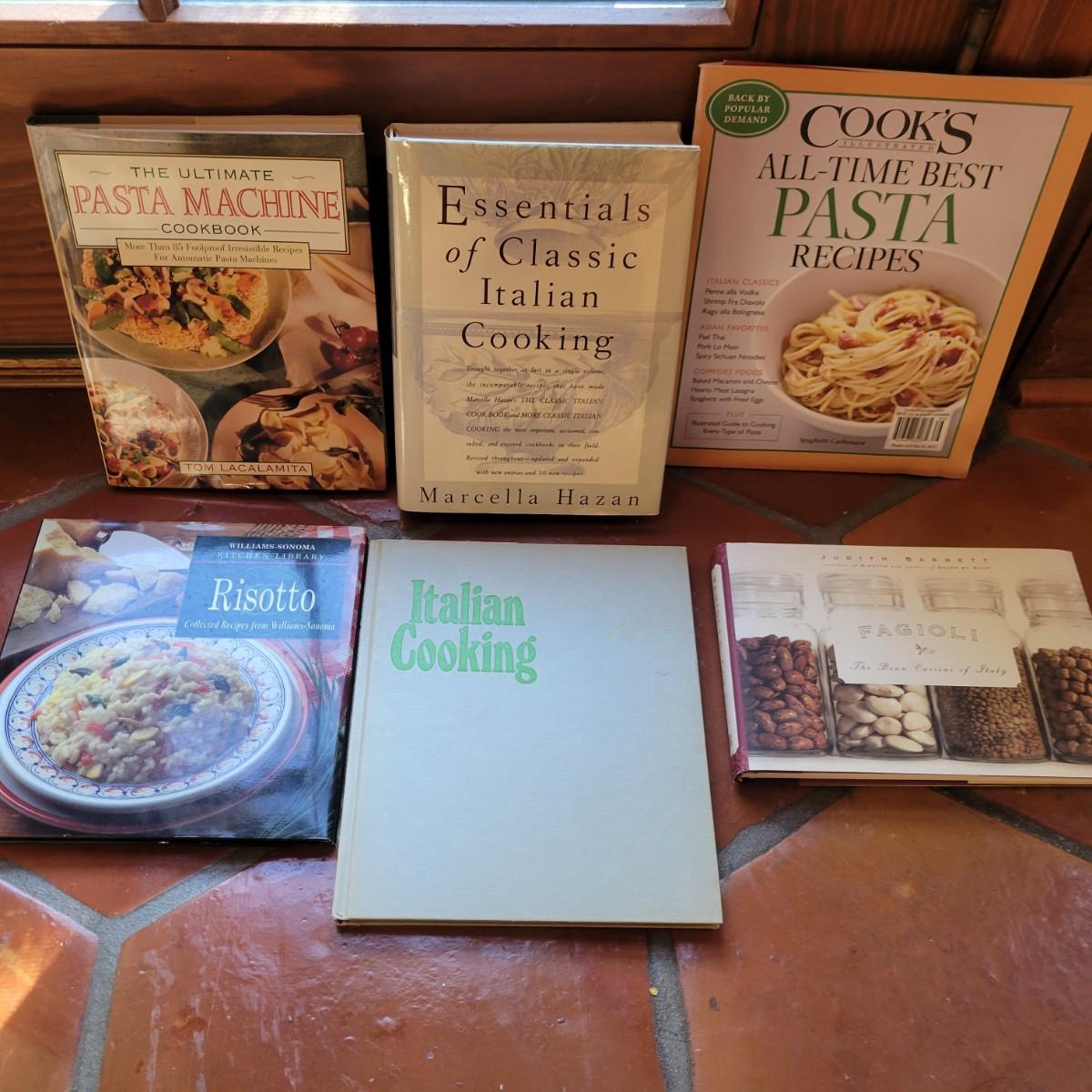 An assortment of cookbooks on Italian cuisine by famous chefs such as Bibi Caggiona, Patricia Wells and more. There are 15 books in ths lot. Shipping available