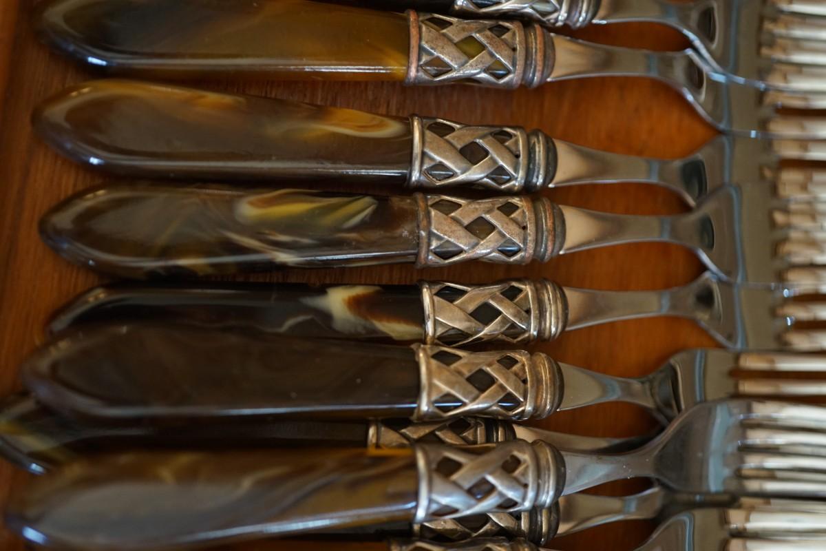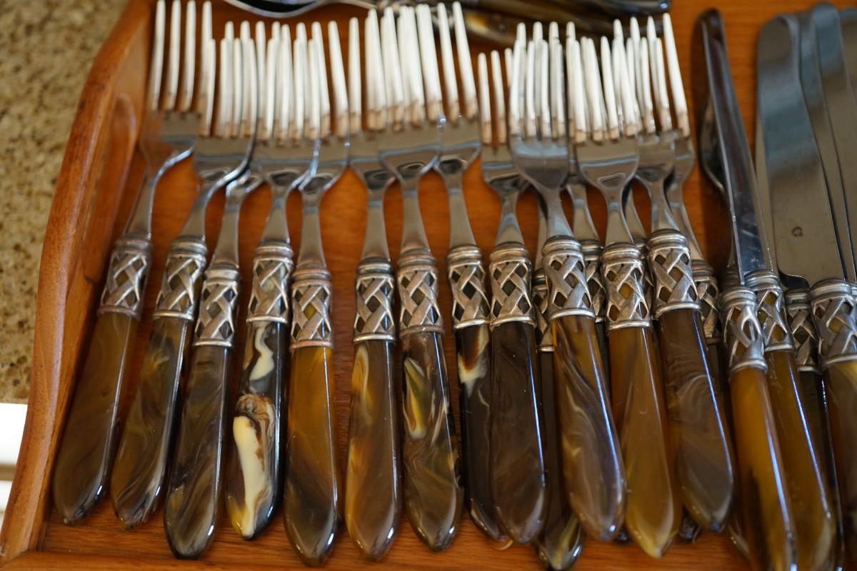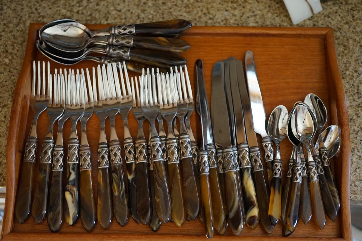 A service for eight of fine quality Italian design flatware. It is made of a durable plastice handle to simulate stone.