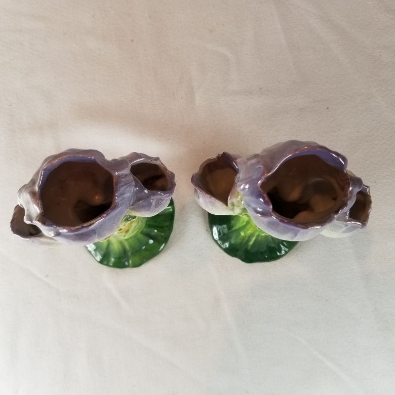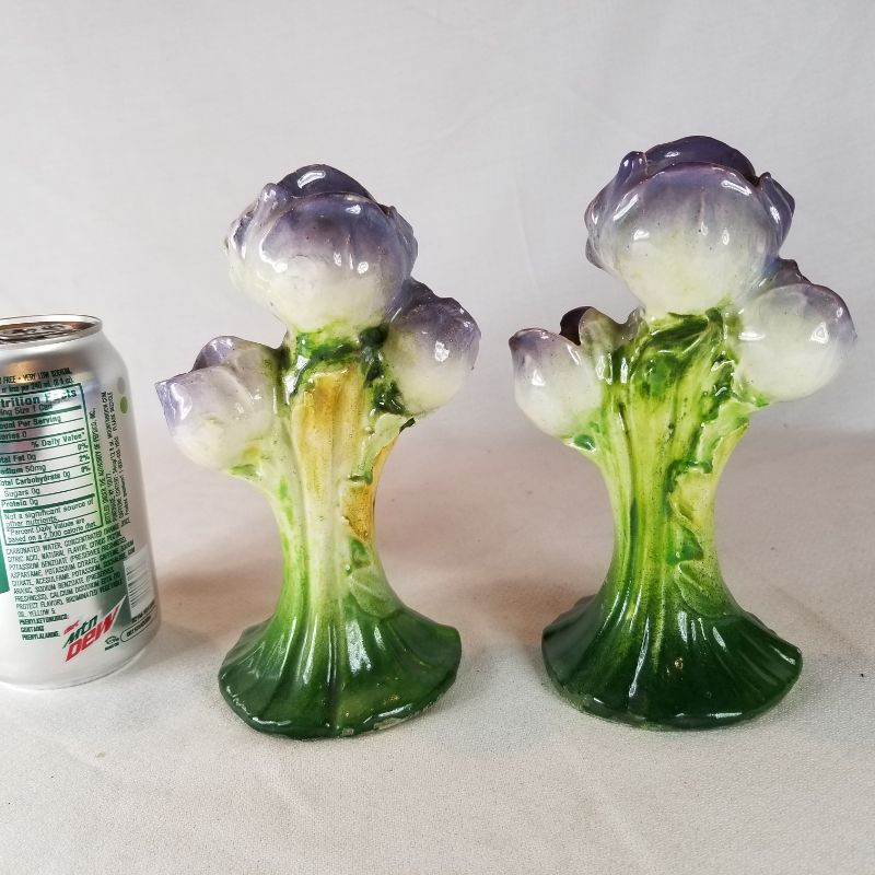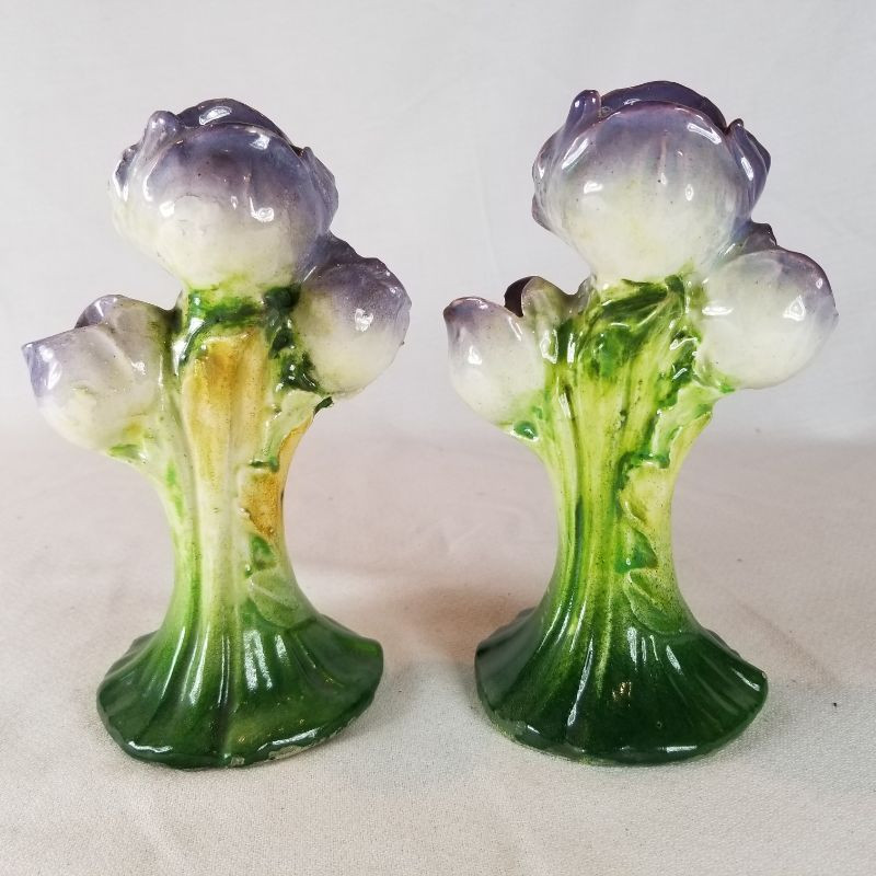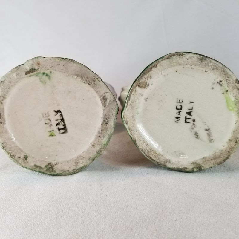 A pair of hand-painted Italian Ceramic Floral Vases. These look pretty even without flowers in them. They stand 7-inches tall and are 4-1/4-inches wide. Some wear on bottom edges but overall in good condition. No chips or cracks. A nice addition to your decor.