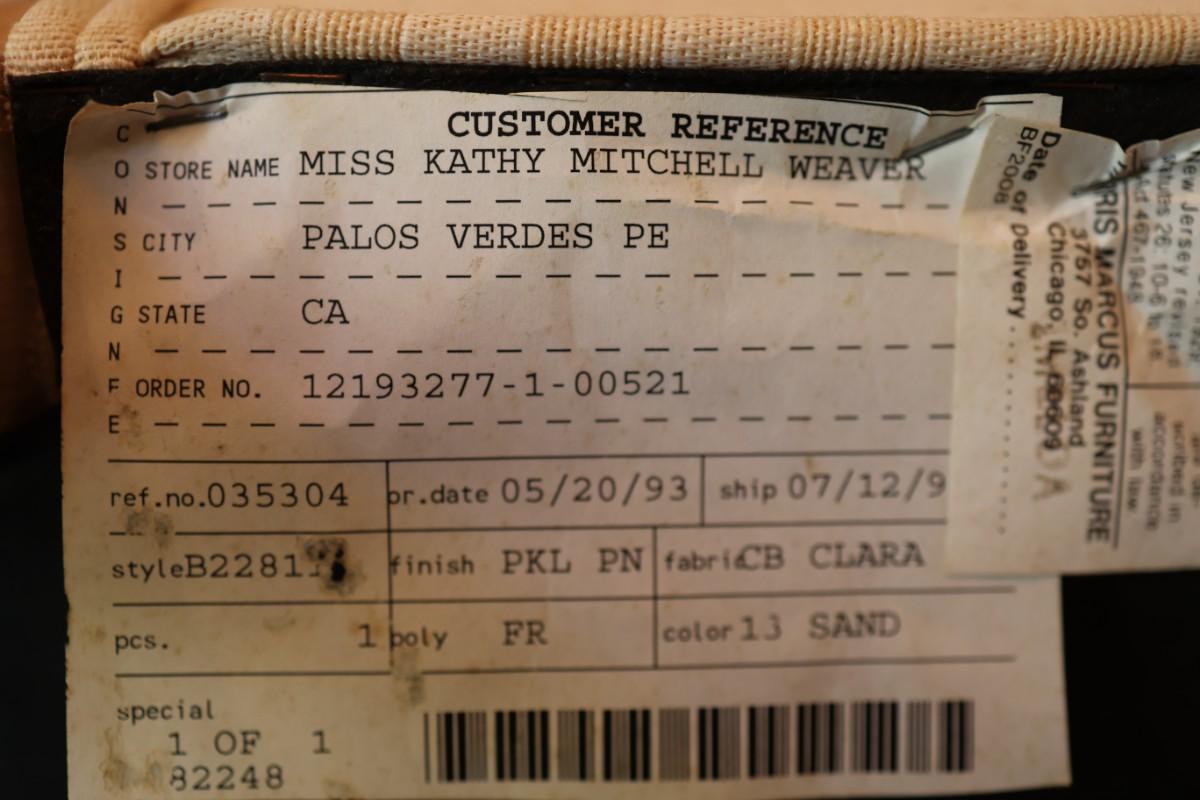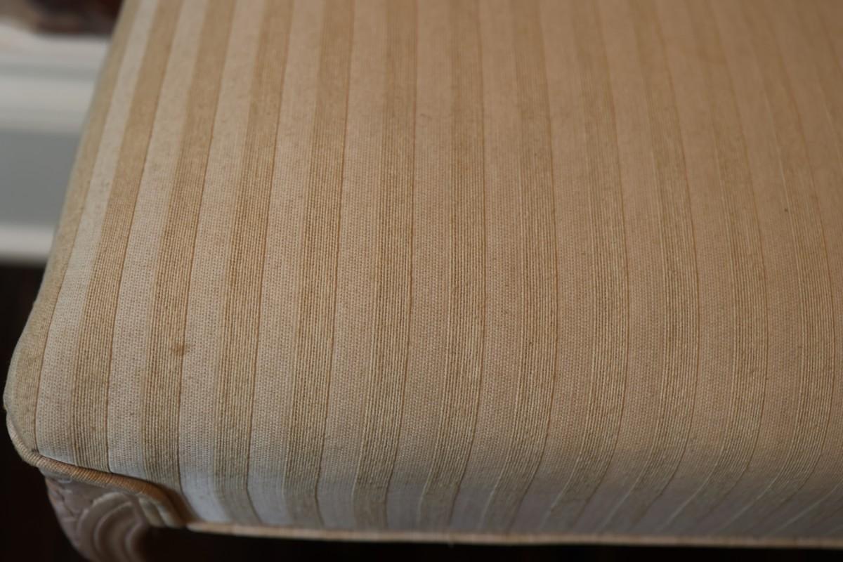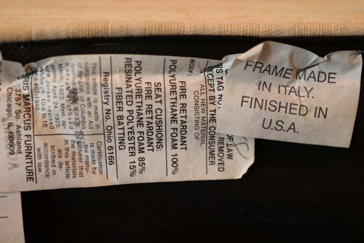 Frame made in Italy and was finished in the USA. See pictures of minor stains on upholstery.