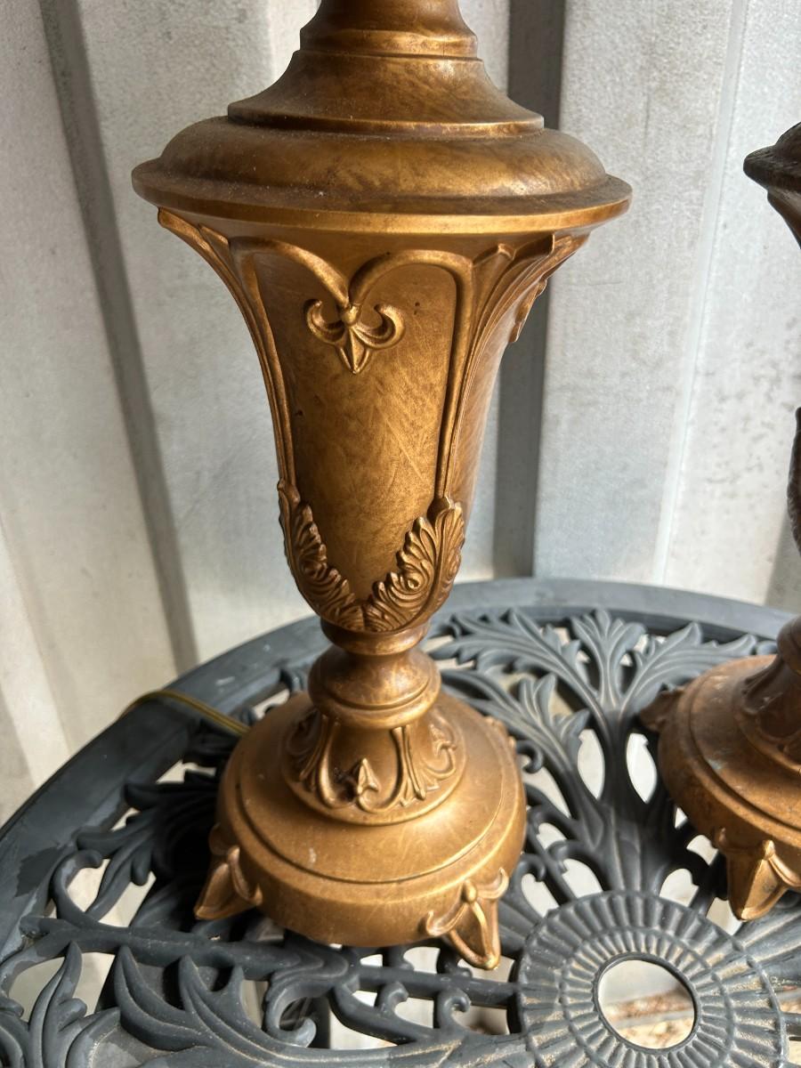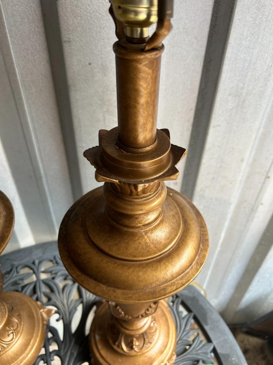 Italian Gilt Inspired Bronze Color Metal Pair of Lamps – Excellent Condition