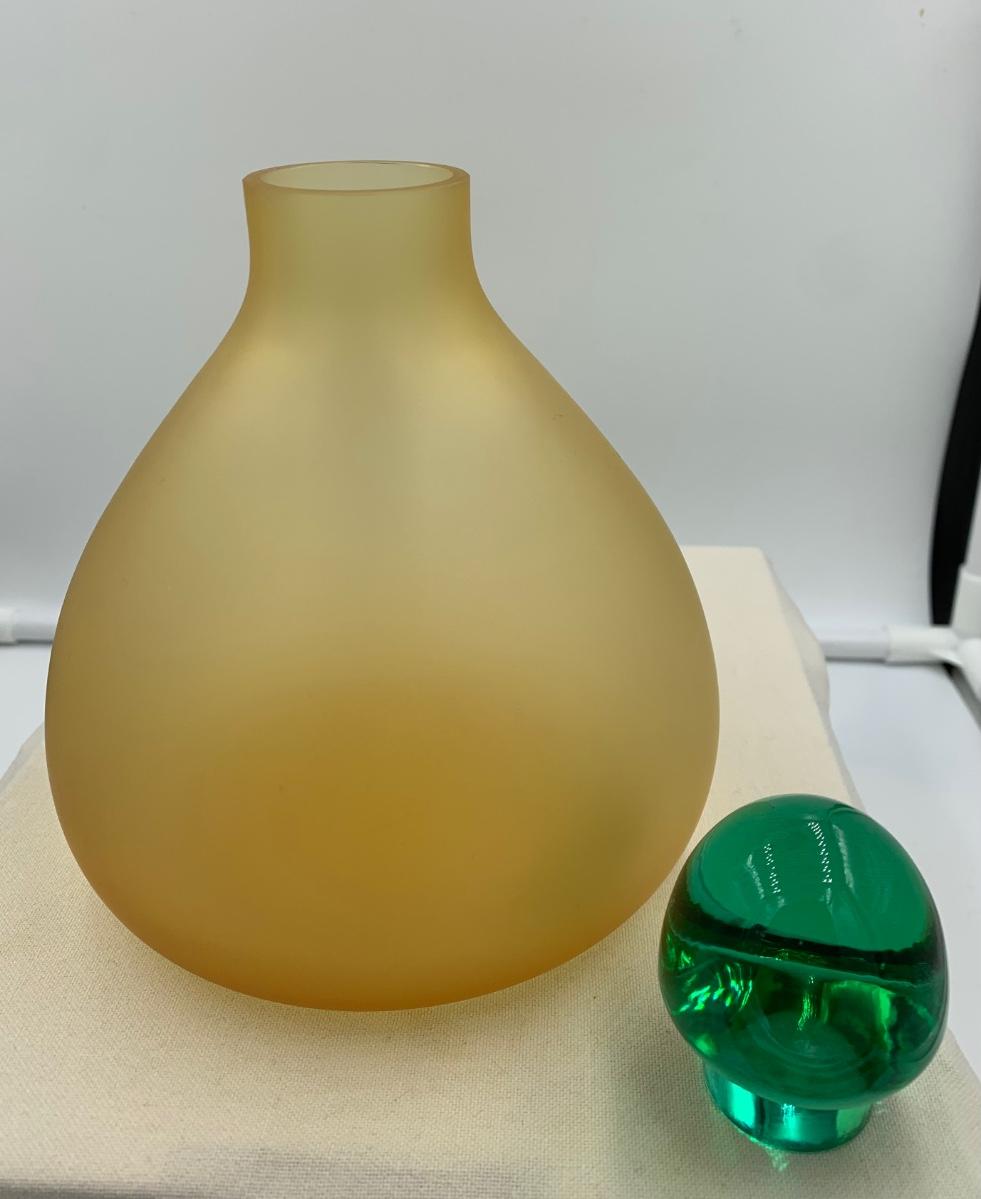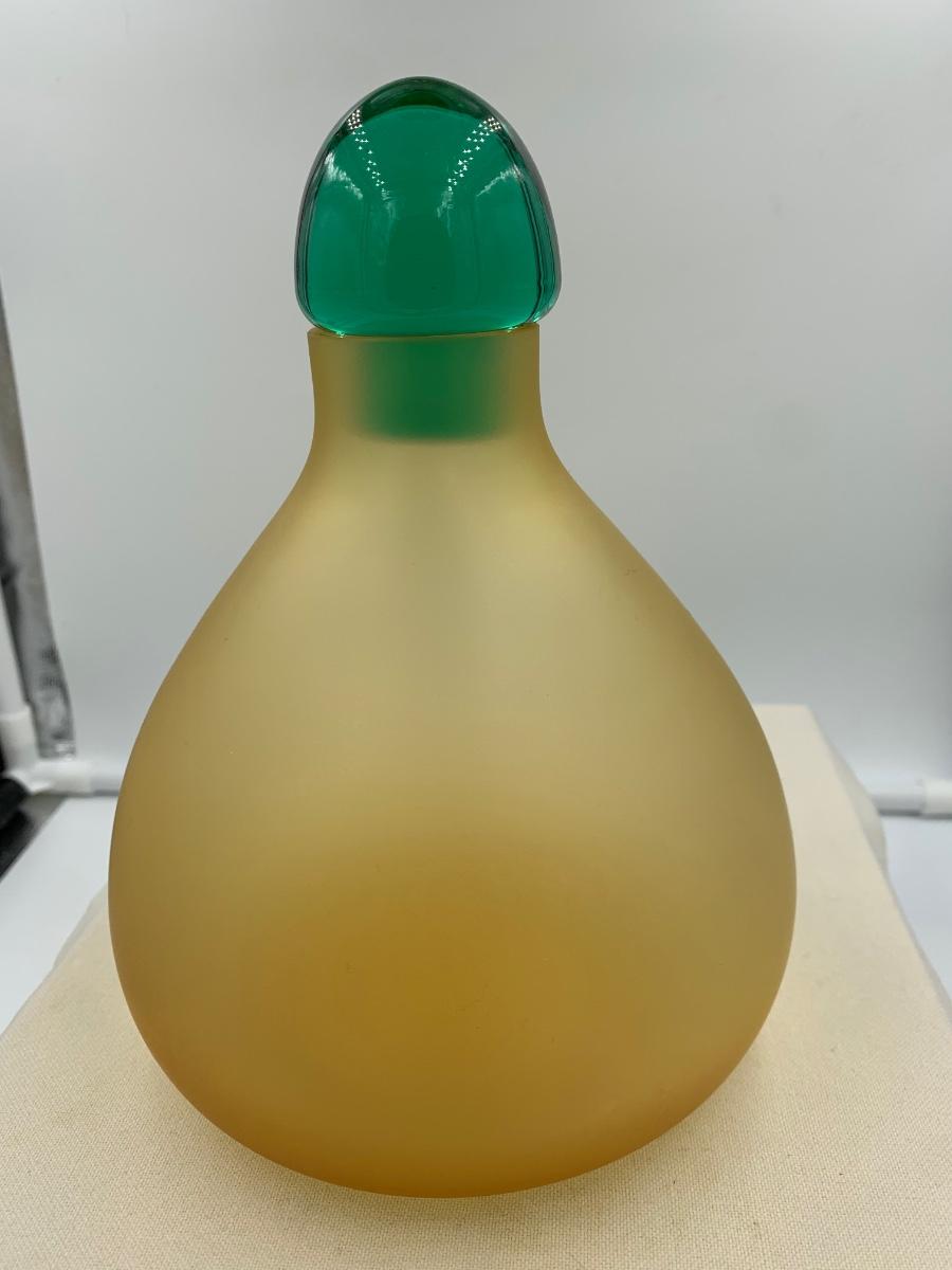This beautiful glass jar with lid measures 8” x 5” and would make a stunning addition to your collection.