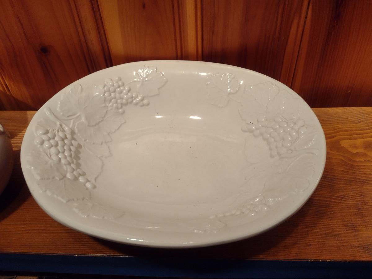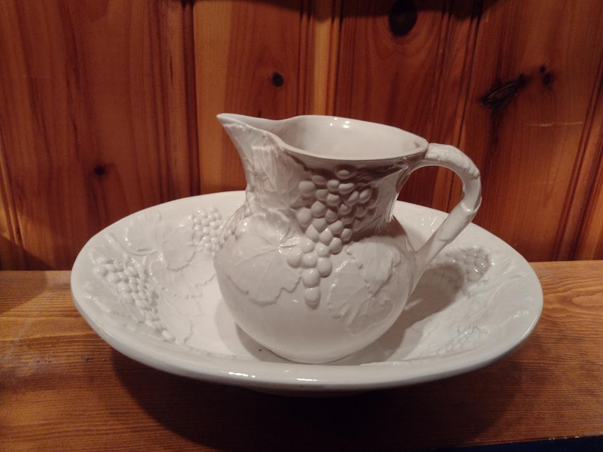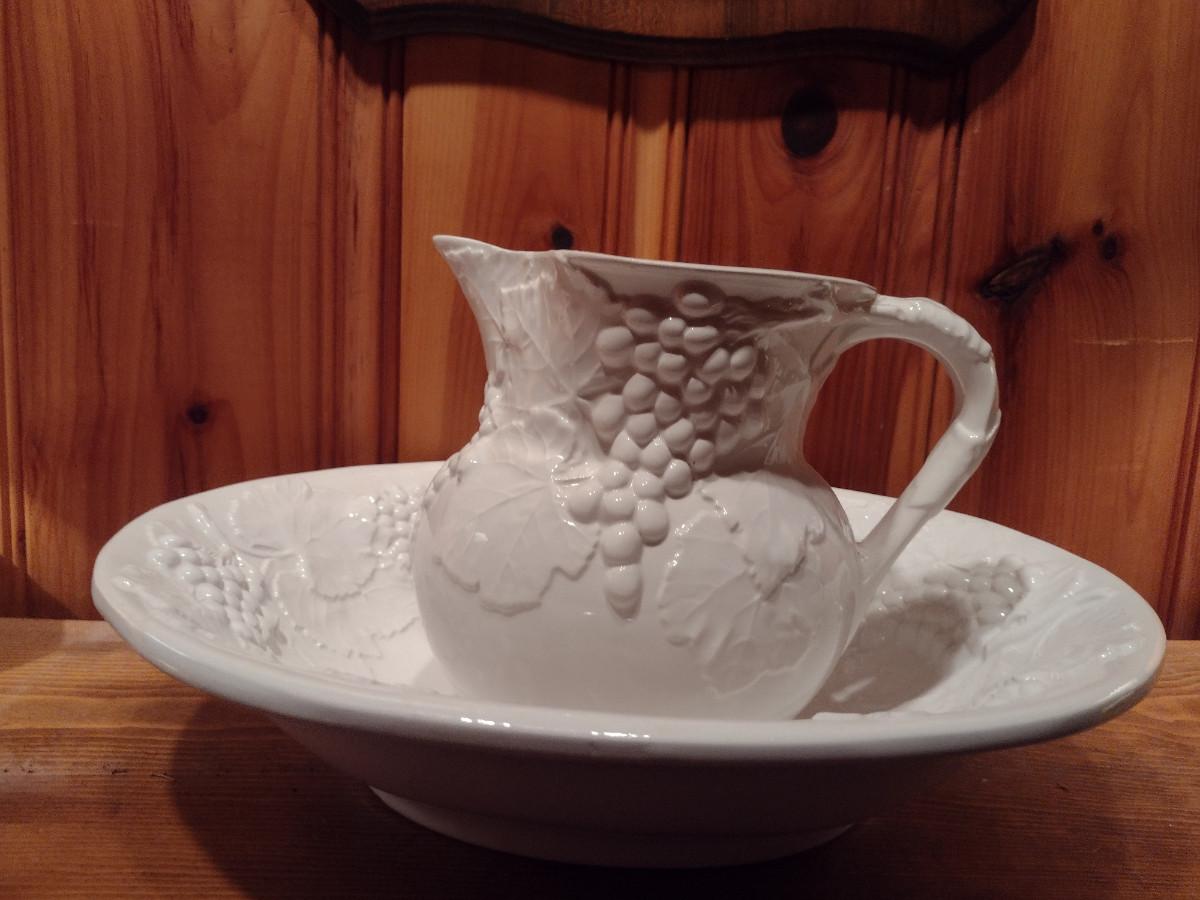 Italian Glazed Porcelain Grapes and Leaves Theme Pitcher and Basin