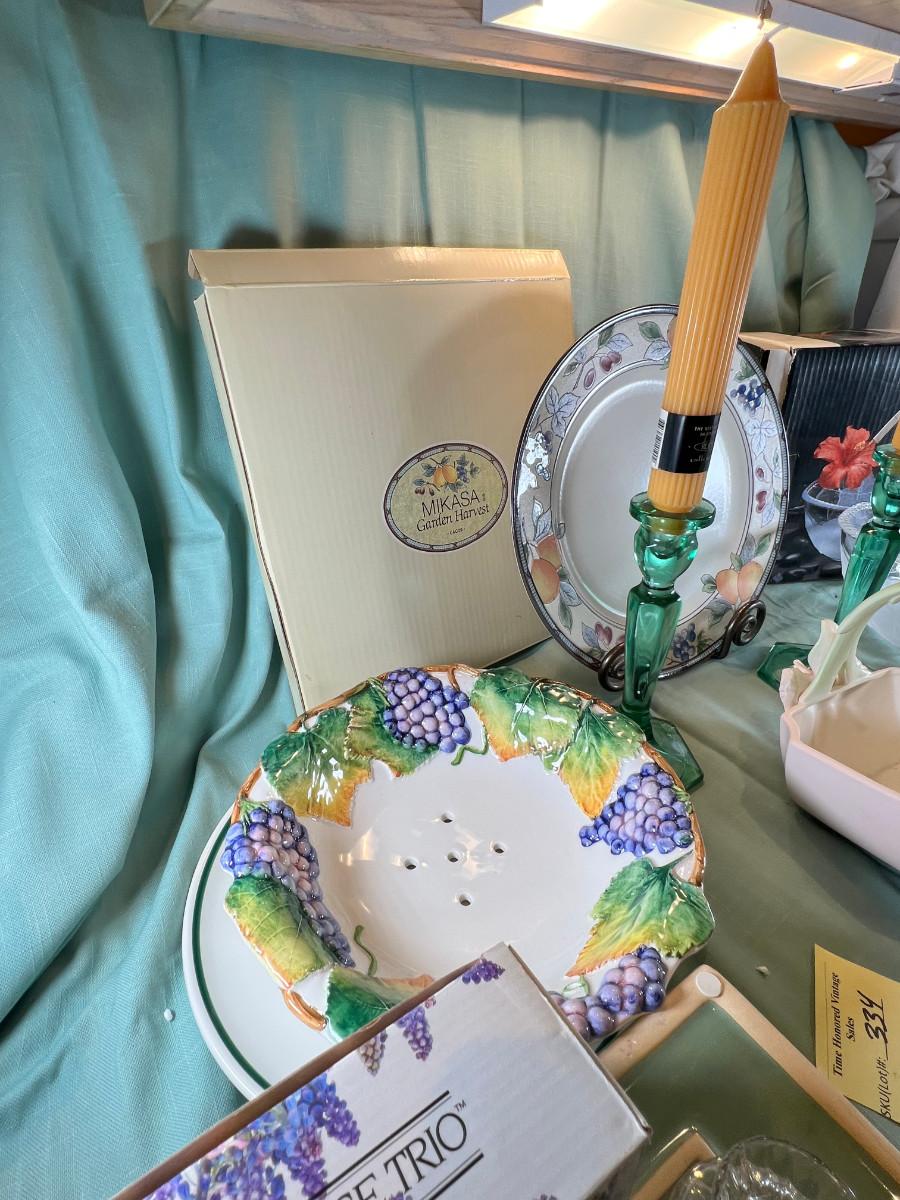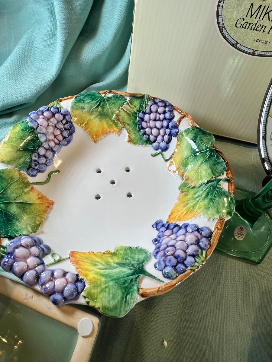 Italian Grape bowl, New Mikasa plate, New glass basket